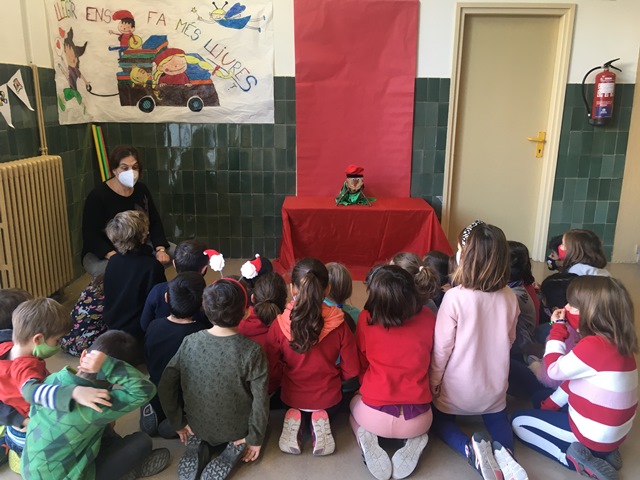ELS NENS I LES NENES DE CICLE INICIAL VAM FER  CAGAR EL TIÓ. LI VAN CANTAR UNA CANÇÓ, VAM PICAR MOLT FORT  I ENS VA CAGAR MOLTES COSES : TORRONS, NEULES, GALETES I MONEDES DE XOCOLATA  . DESPRÉS VAM FER UN ESMORZAR A L’AULA.