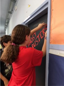 Les nenes i els nens de cinquè hem començat a decorar la porta.