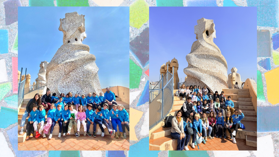 Els nens i les nenes de cicle inicial acabem el trimestre visitant La Pedrera, també coneguda com la Casa Milà. Hem après molt, hem fet un taller de trencadís i hem gaudit, especialment, de les vistes des del terrat.