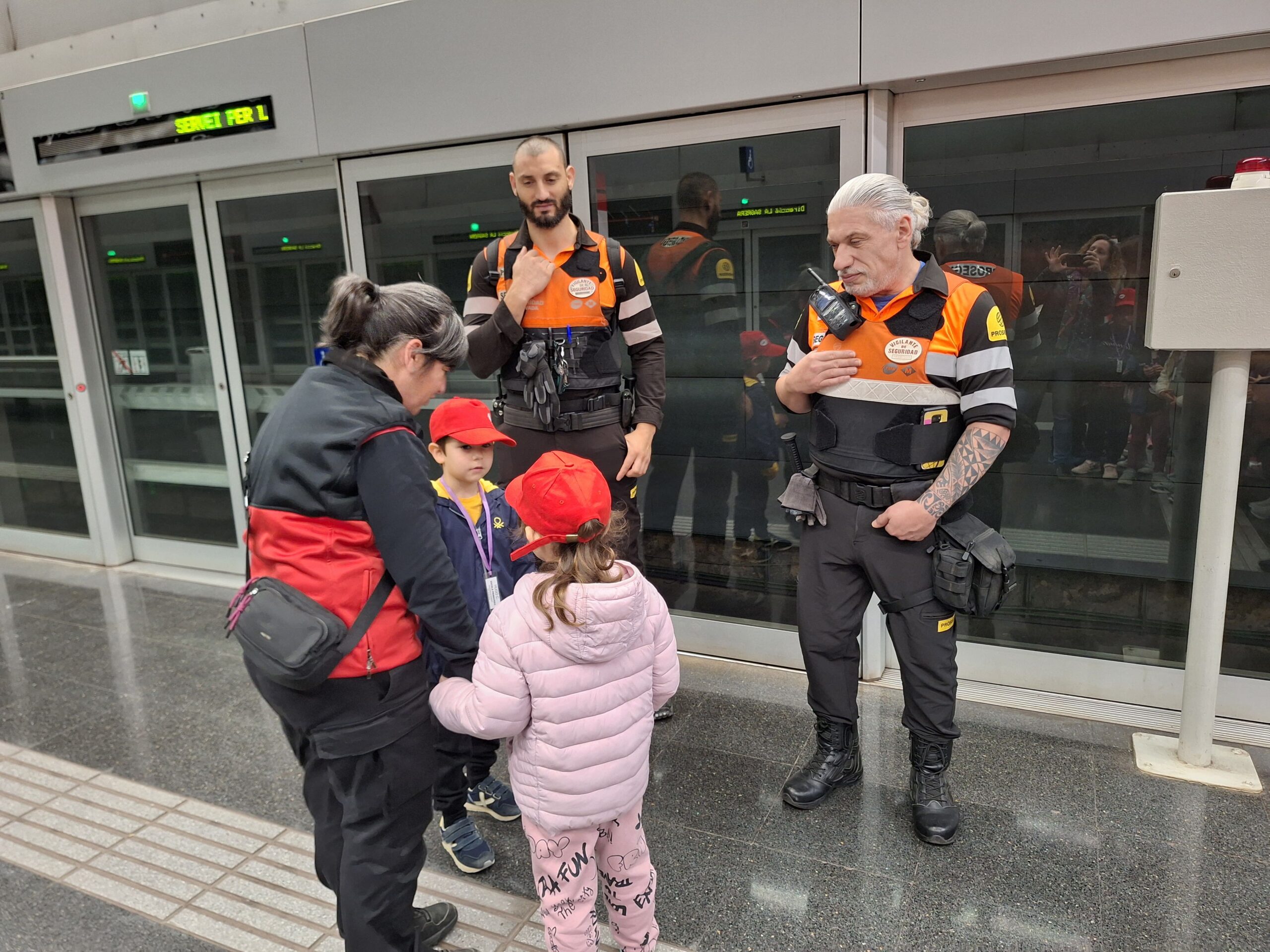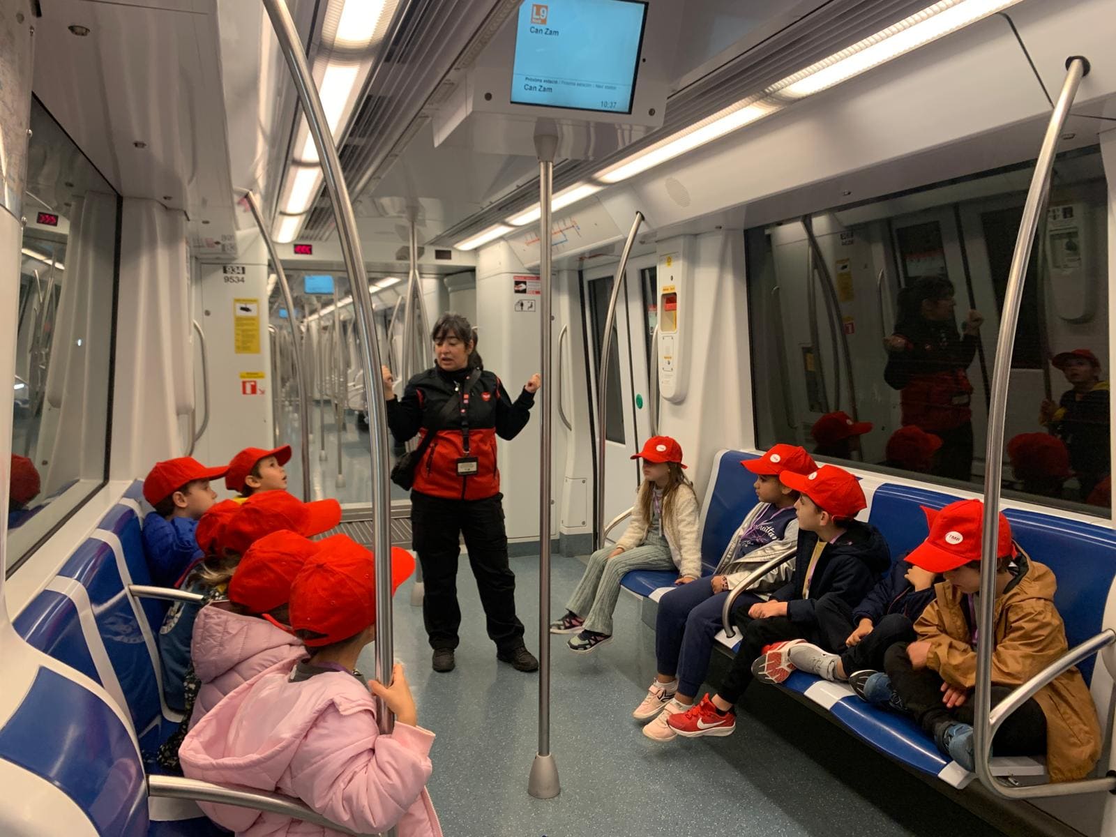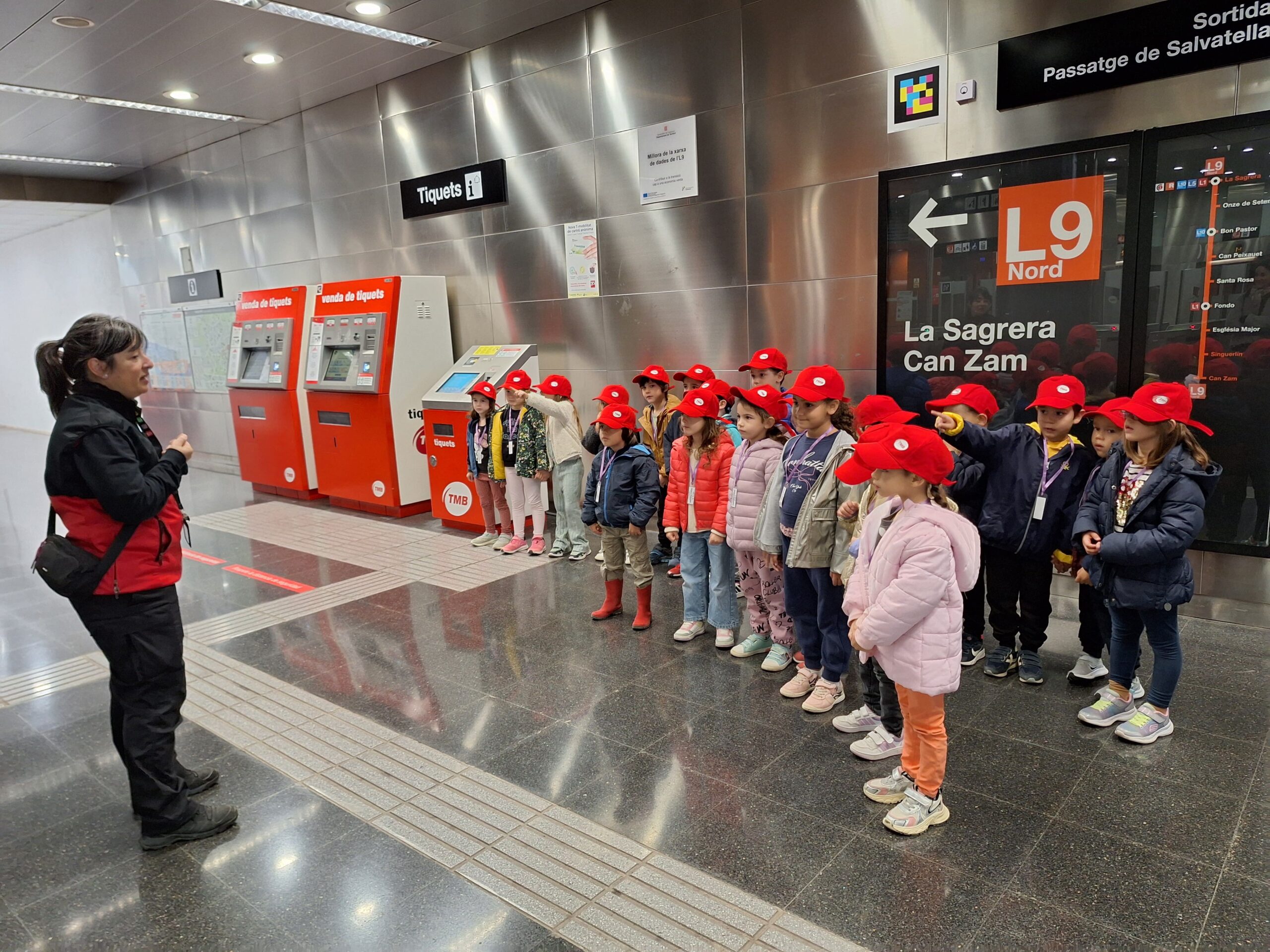 EL DIMARTS 12 DE NOVEMBRE, ELS CASTELLERS I CASTELLERES VAM ANAR A VISITAR L’ESTACIÓ DE METRO DE LA L9 SINGUERLÍN. VAM PODER CONÈIXER ELS DIFERENTS ESPAIS DEL METRO: VESTÍBUL, ANDANES I VAGONS. VAM VEURE COM FUNCIONEN LES MÀQUINES EXPENEDORES DE BITLLETS, EL MAPA DEL METRO I EL TERMÒMETRE (QUE INDICA QUINES SÓN LES PARADES DE METRO DE LA LÍNIA). ENS VAN EXPLICAR TAMBÉ QUE HI HA UNS ASCENSORS QUE SÓN D’ÚS PRIORITARI I COM FUNCIONA LA CAMPANETA D’EMERGÈNCIA. VAM ANAR EN METRO FINS A LA PARADA DE CAN ZAM, I ENS VA AGRADAR MOLT FER DE “CONDUCTORS”. FINALMENT, VAM ACABAR EL MATÍ JUGANT UNA ESTONA AL “PARC DELS PINS”.