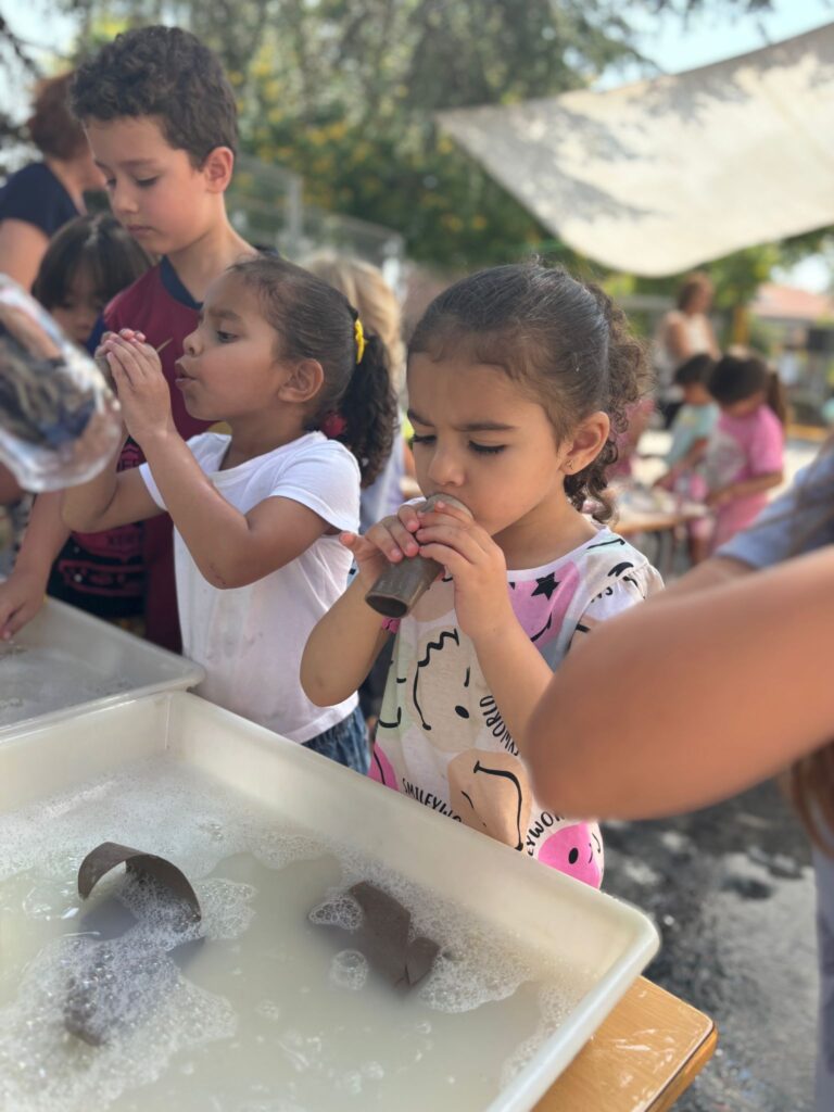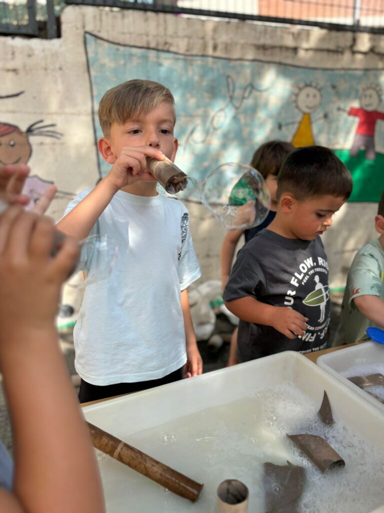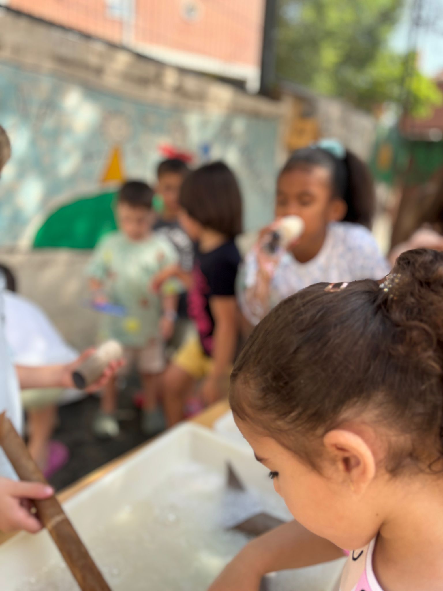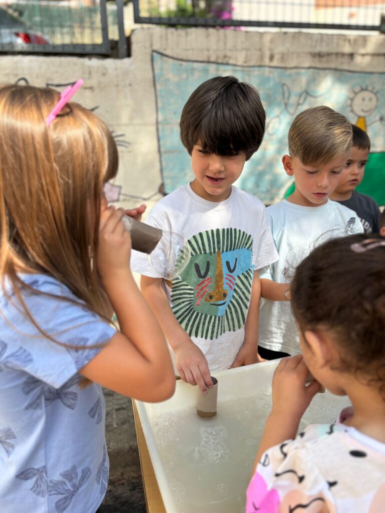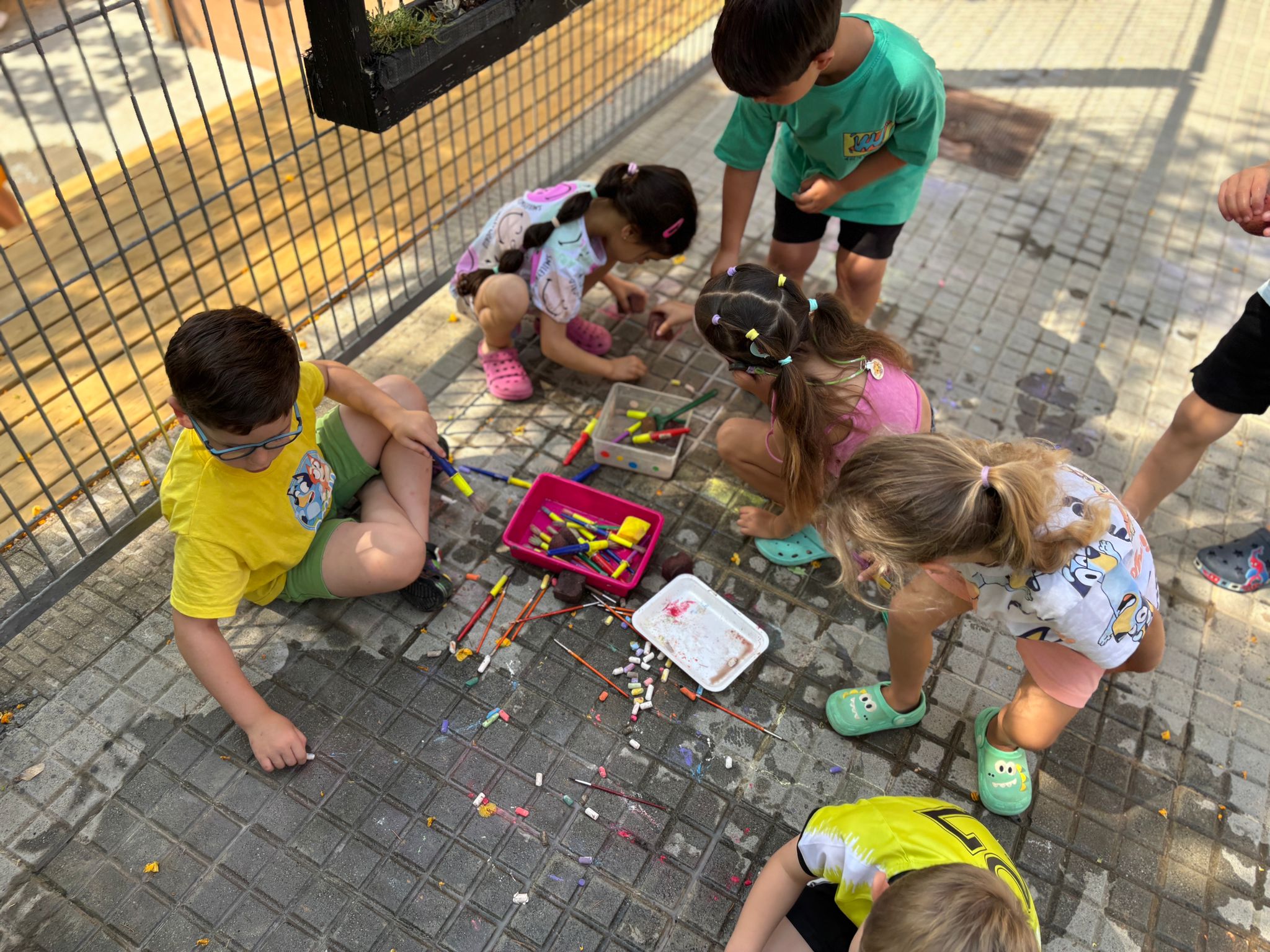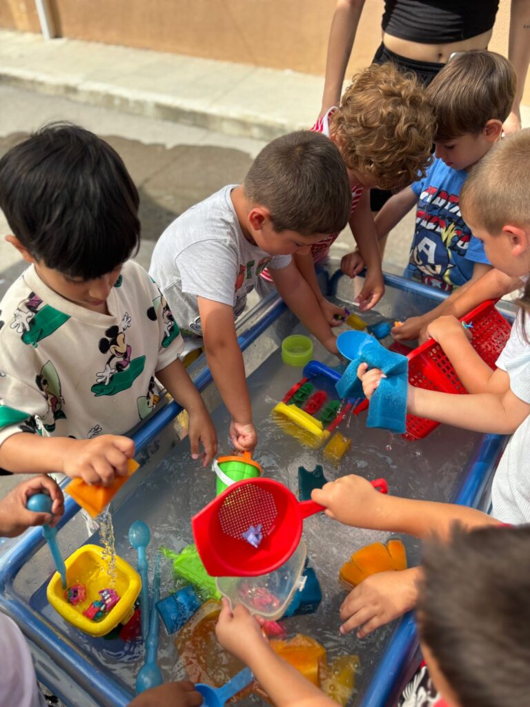 JA HA ARRIBAT LA CALOR I AQUESTS DIES HEM GAUDIT D’ALGUNES ACTIVITATS BEN REFRESCANTS AL PATI DE L’ESCOLA. ELS INFANTS DEL CICLE DE PETITS ENS HO HEM PASSAT D’ALLÒ MÉS BÉ JUGANT: A DIBUIXAR AMB GUIXOS I AIGUA, FENT BOMBOLLES, CONSTRUINT AMB ESCUMA D’AFAITAR I PECES O AMB LA PISCINA D’AIGUA. AQUESTES ACTIVITATS ENS HAN PERMÈS DESCOBRIR, EXPLORAR I COMPARTIR MOMENTS MOLT DIVERTITS ENTRE TOTS I TOTES. CONTINUAREM GAUDINT DELS ÚLTIMS DIES DEL CURS!