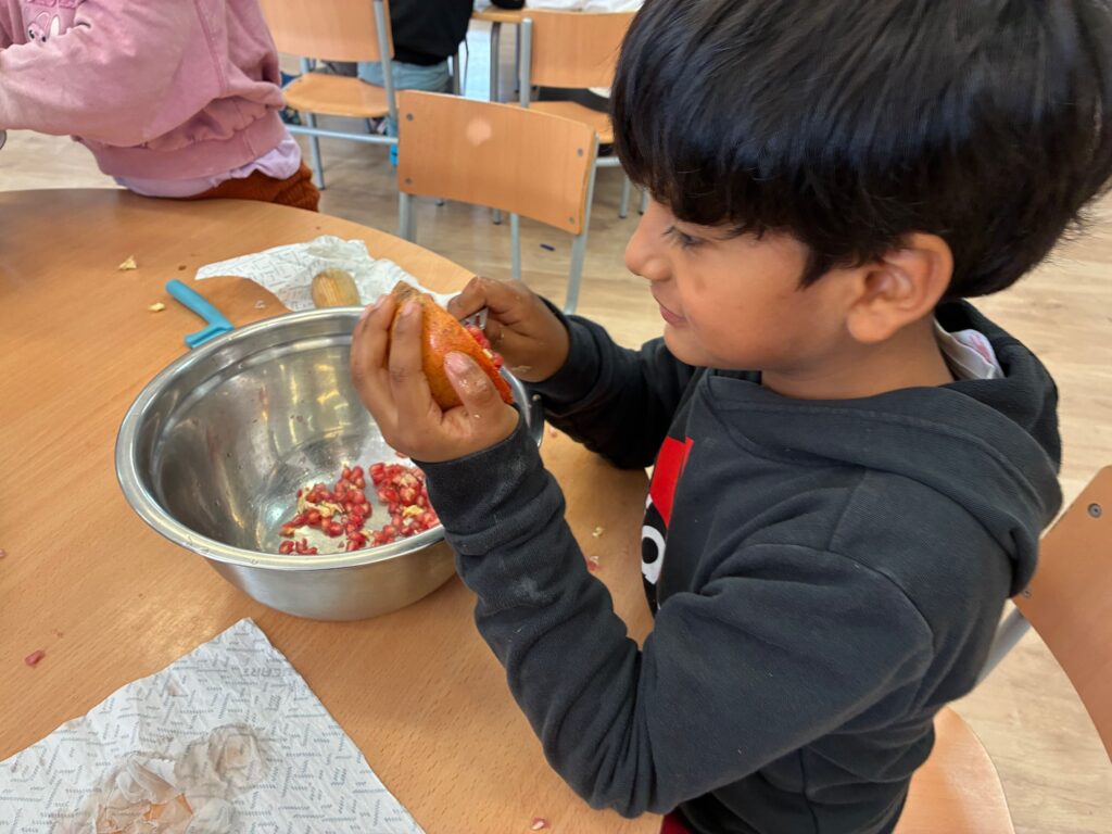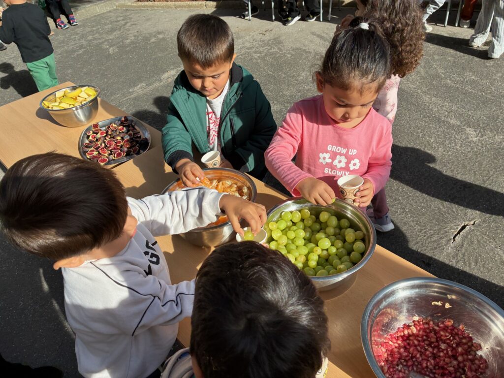 DIVENDRES PASSAT ELS GEGANTS, ELS DIABLES I ELS CASTELLERS VAM CELEBRAR “LA CASTANYADA”. DE BON MATÍ VAM GAUDIR D’UN TASTET DE FRUITES DE LA TARDOR (MAGRANES, POMES, MANDARINES, RAÏM…) PREPARADES PER ELLS MATEIXOS I ACOMPANYATS DE MÚSICA DE TARDOR. I A LA TARDA VAM TENIR UNA VISITA MOLT ESPECIAL, LA CASTANYERA, QUE ENS VA PORTAR UN CISTELL PLE DE CASTANYES PELADES I TORRADES I ESTAVEN MMMM BONÍSSIMES!!!