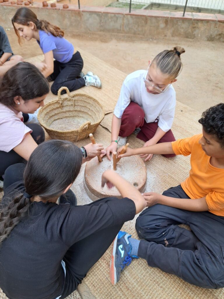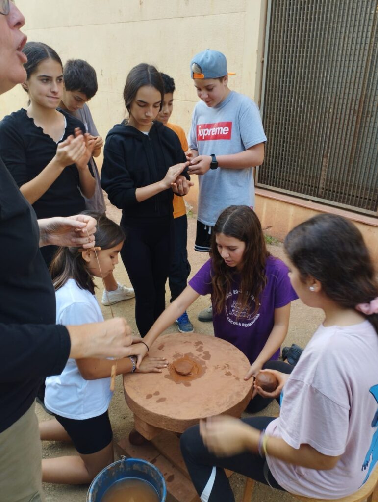 La següent setmana vam pujar al poblat Puig Castellar per gaudir de les vistes i l’entorn i situar-nos al poblat que dona nom a la nostra classe, vam fer un viatge a través del temps i vam poder comprovar com era de dura la vida dels nostres avantpassats en aquella època. Després, vam baixar al Museu Torre Balldovina per fer una tallers, on es van convertir en Ibers i van fabricar la seva pròpia moneda, van fer farina i una ceràmica molt original.