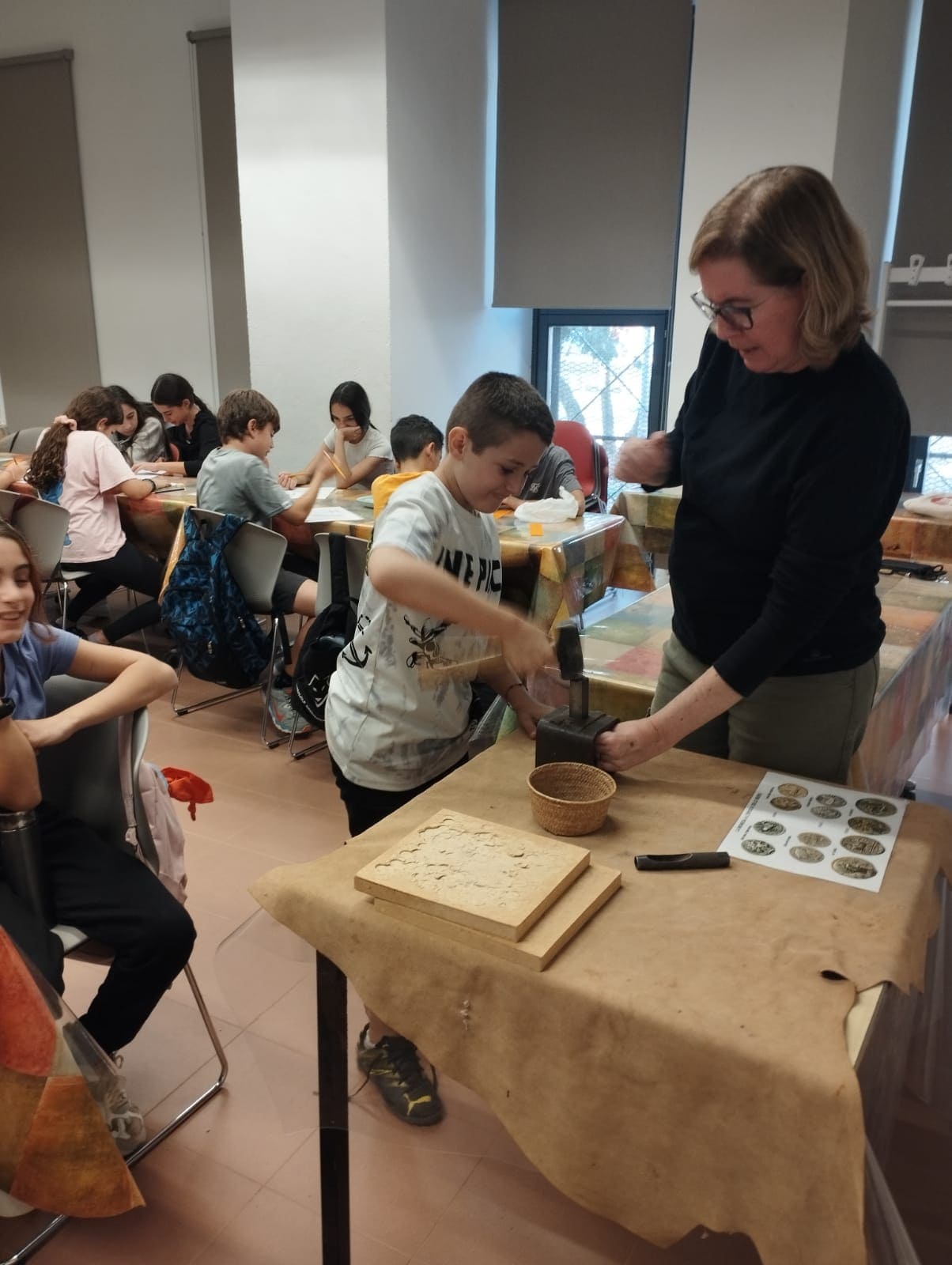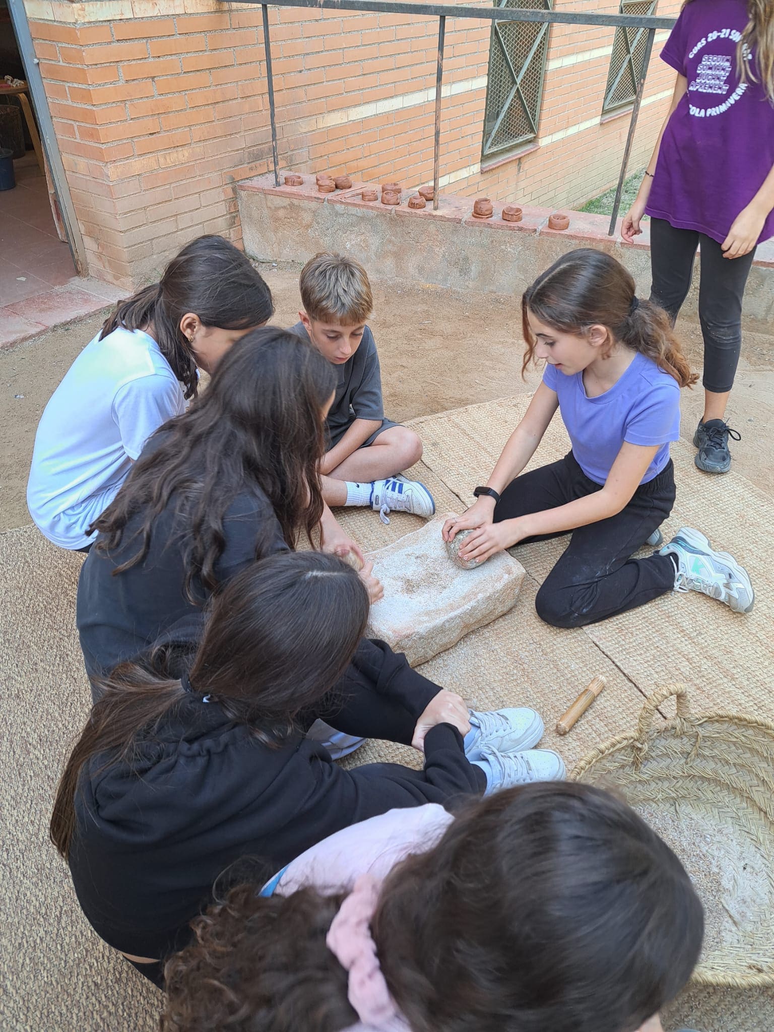 La següent setmana vam pujar al poblat Puig Castellar per gaudir de les vistes i l’entorn i situar-nos al poblat que dona nom a la nostra classe, vam fer un viatge a través del temps i vam poder comprovar com era de dura la vida dels nostres avantpassats en aquella època. Després, vam baixar al Museu Torre Balldovina per fer una tallers, on es van convertir en Ibers i van fabricar la seva pròpia moneda, van fer farina i una ceràmica molt original.