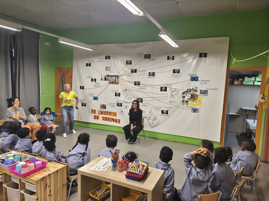 Durant la visita, els nens i nenes li han mostrat els mapes conceptuals que han anat construint al llarg del curs. A través d’aquests mapes, l’Eva ha pogut veure totes les produccions, idees i descobertes que han sorgit a partir de TOCATS i de les activitats fetes a l’aula.