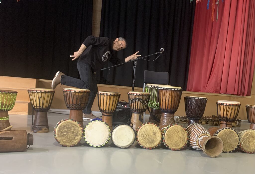 Aquesta setmana, els infants de 1r hem pogut gaudir d’un taller de percussió amb Djembés. Els Djembés són uns instruments que provenen de l’Àfrica de l’oest i que es toquen per amenitzar les festes. A més, hem descobert un altre instrument, que es diu Balàfon, i que és l’avi musical del xilòfon: