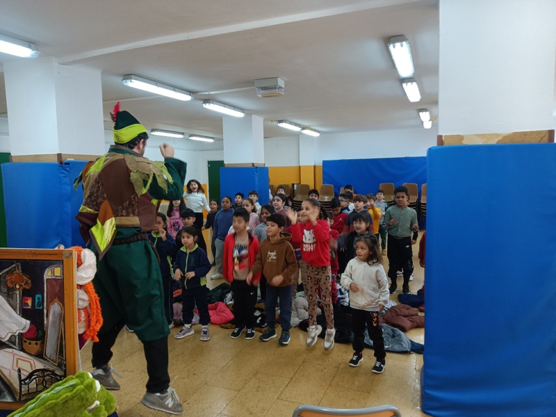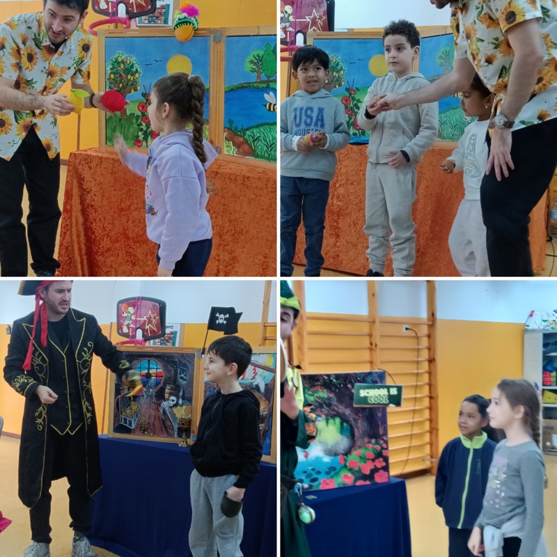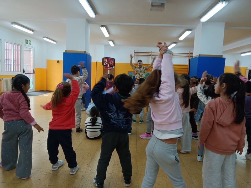 Tothom s’ho ha passat genial! Hem saltat, ballat i cantat, i hem gaudit molt de les històries. Fins i tot alguns alumnes han fet d’ajudants de l’actor!