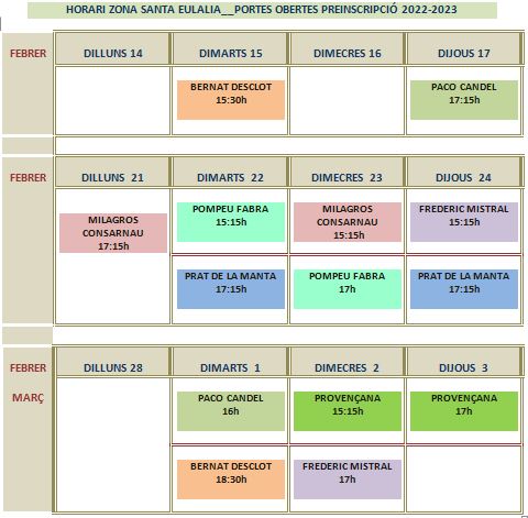 Us compartim el calendari de les portes obertes de les escoles públiques de Santa Eulàlia.