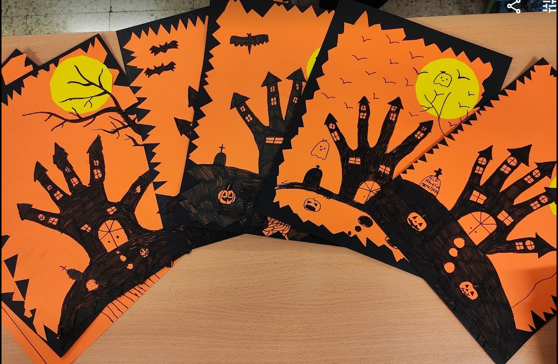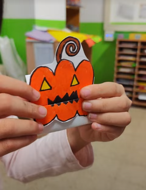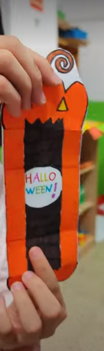 Per altra banda, vam fer un desplegable amb figures representatives de Halloween (com fantasmes, carbasses, esquelets, etc.), en els quals en estirar i desplegar, sortia un missatge.
