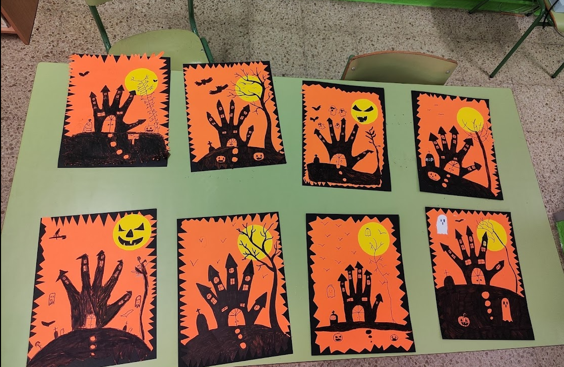 Ahir com a commemoració del dia de Halloween, al cicle superior vam realitzar dos tallers plàstics relacionats amb aquesta festa.