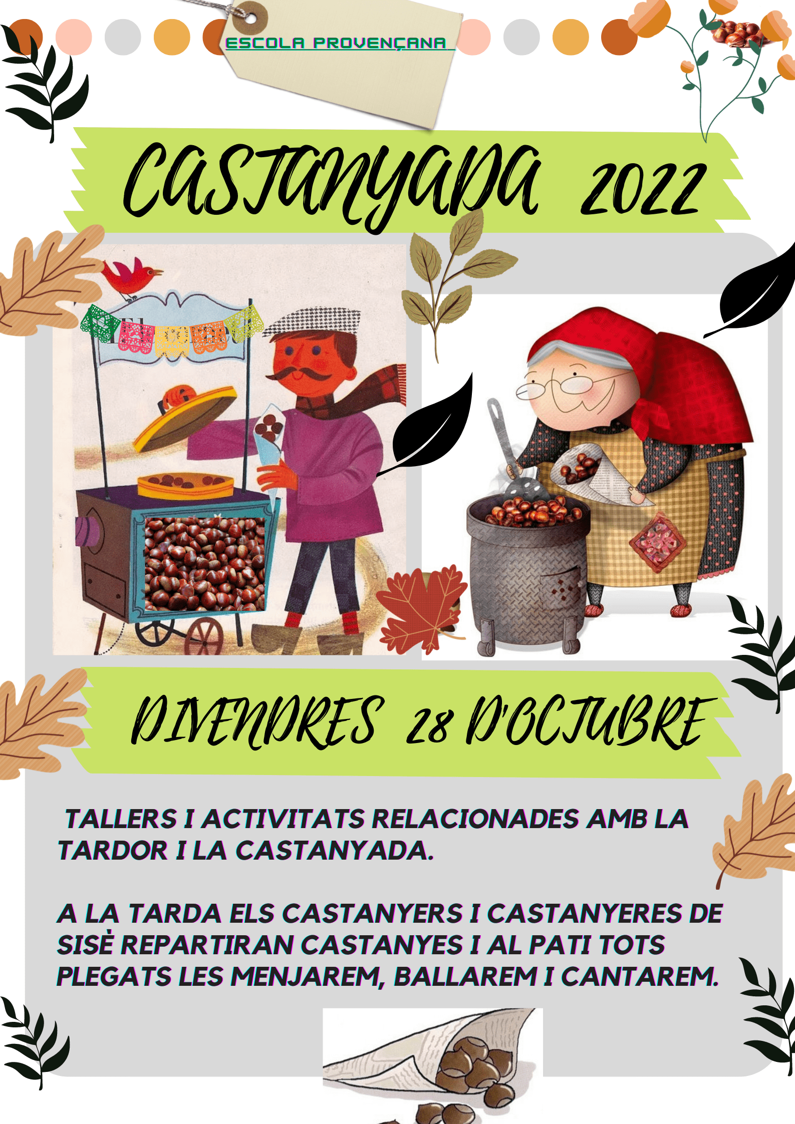 24/10/22El proper divendres 28 d’octubre celebrarem la castanyada a l’escola.