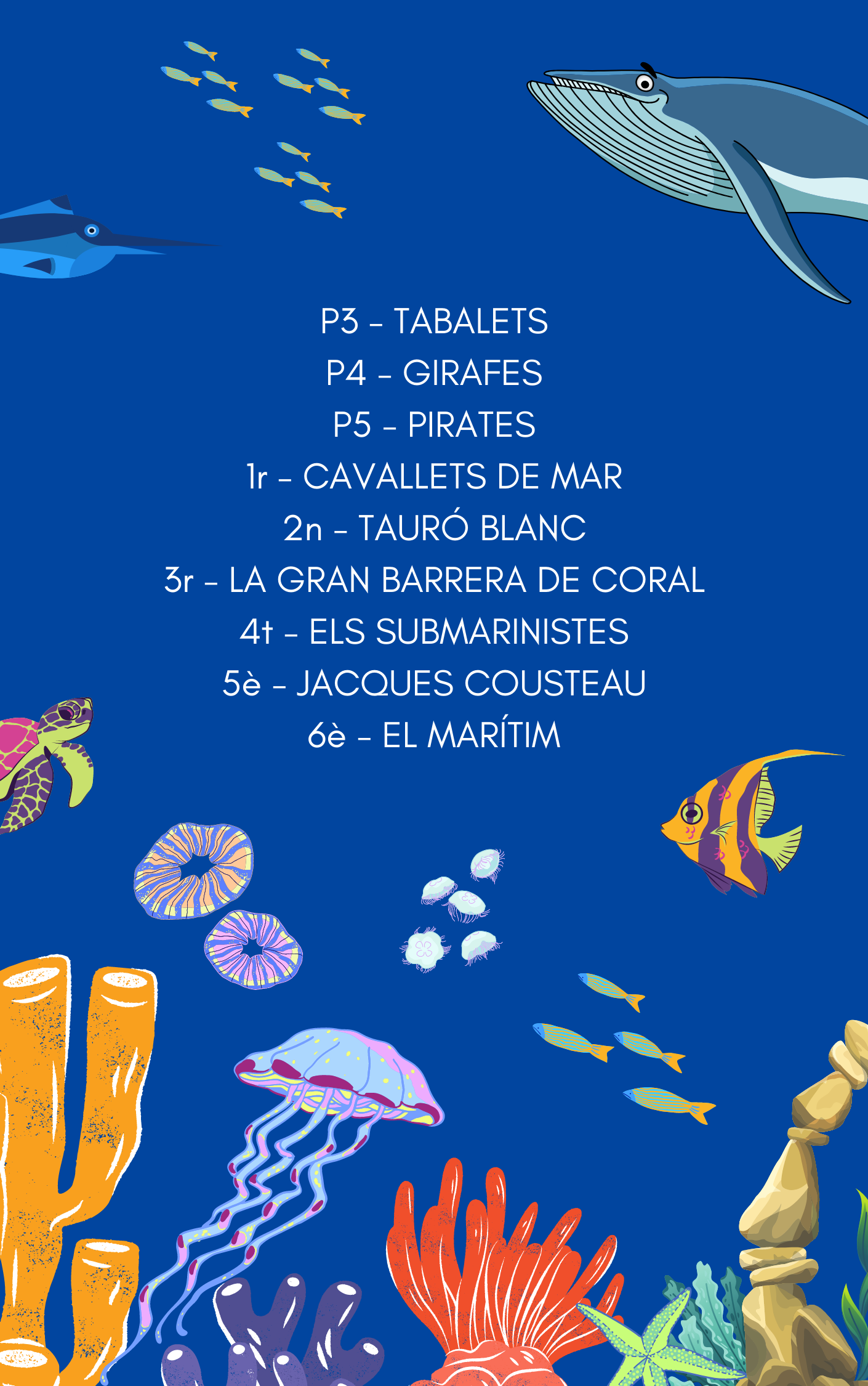 Aquest curs treballarem com a tema comú d’escola l’Objectiu de Desenvolupament Sostenible 14: VIDA SUBMARINA.
