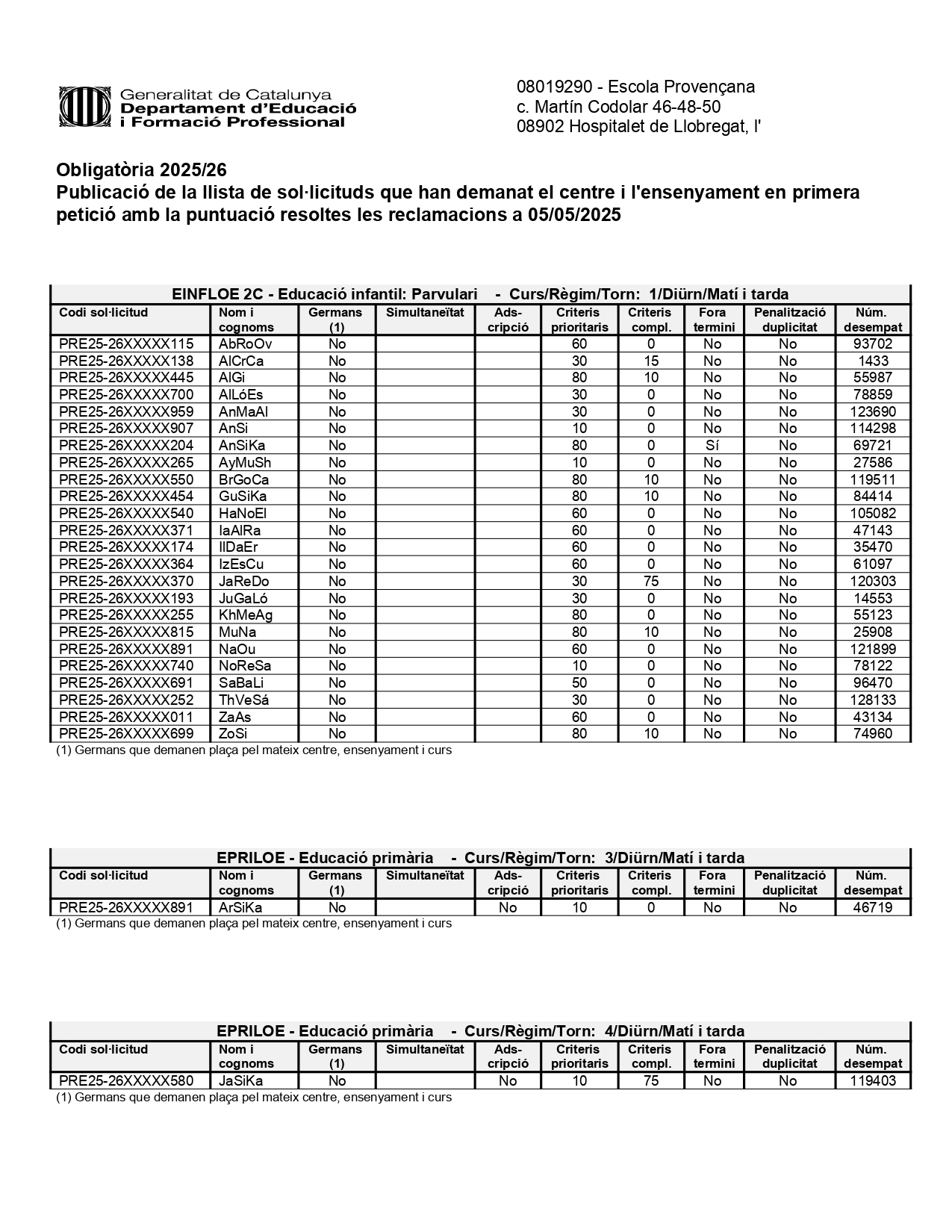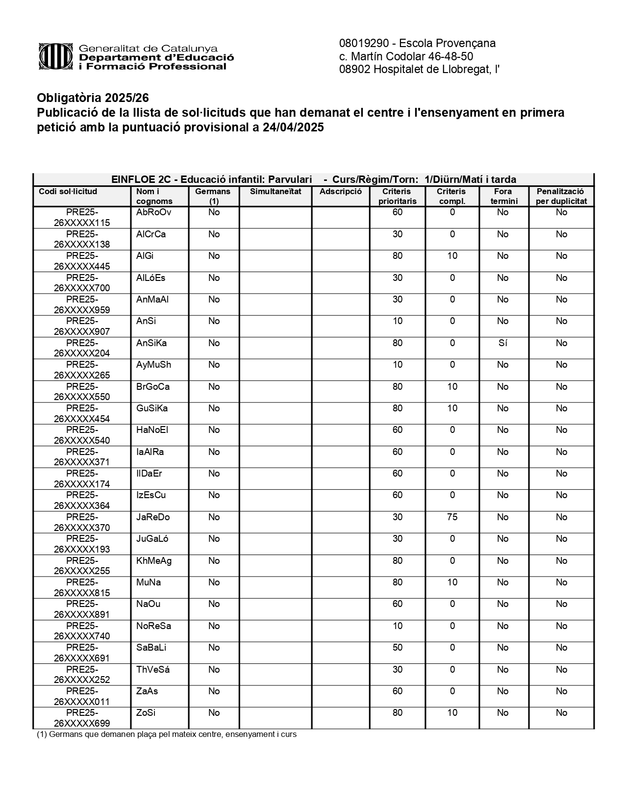 06/05/25Us volem informar que s’ha obert la convocatòria per demanar la beca menjador pel curs escolar 2025-2026.