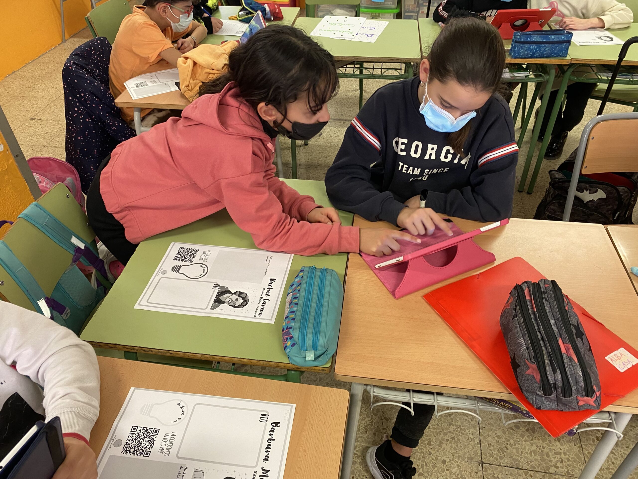 La classe dels Submarinistes, ahir, a l’àrea de castellà, van realitzar una activitat per parelles i trios, on van investigar diferents dones científiques que van fer història.