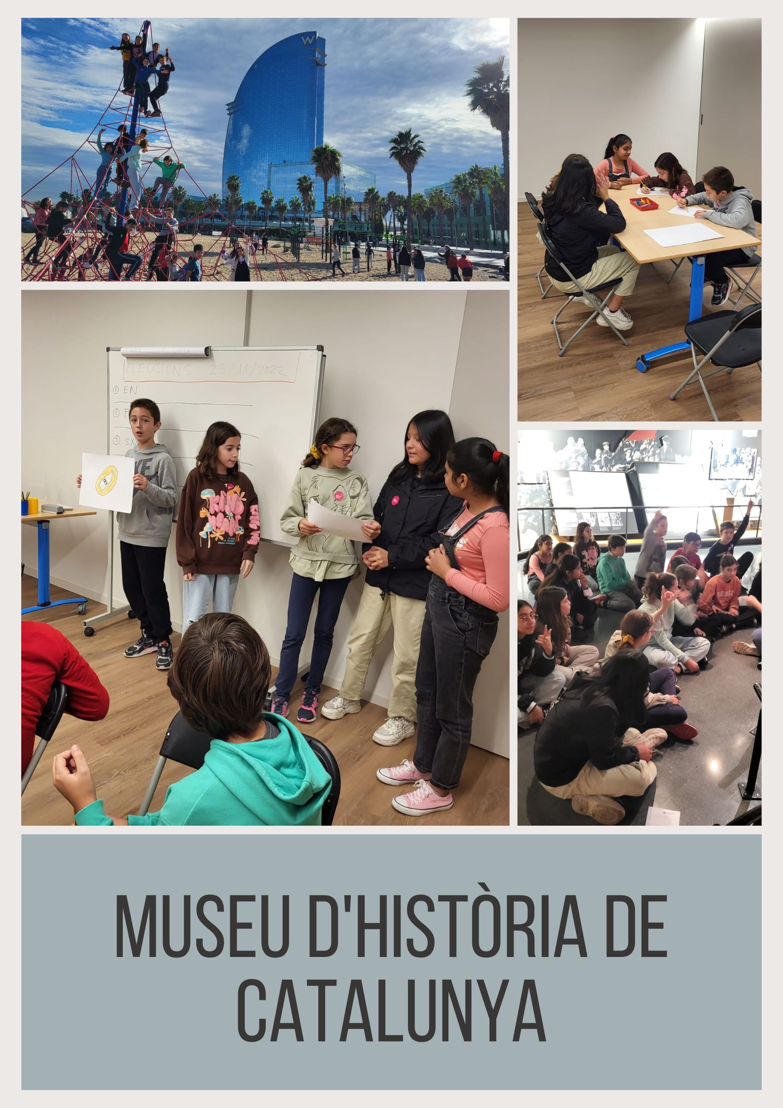 La classe de 6è hem visitat el Museu d’Història de Catalunya, situat al costat del barri de la Barceloneta. Hem fet un viatge per l’historia política del nostre país, des de la 2 segona república, la guerra civil i la restauració de la democràcia. Per finalitzar hem realitzat un petit taller on ens hem convertit en polítics. Hem hagut d’elaborar una petita campanya electoral per ser la candidatura escollida.