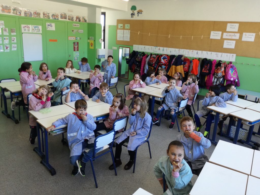 Els alumnes de 1r de primària tasten l’oli de raig provinent de les oliveres que van pentinar Comunicació Puigcerver13/11/17 Després d’haver pentinat les oliveres del pati dijous a la tarda, les classes el Lleó i la Tronada de 1r de primària han tastat l’oli de raig amb sal, sucre i Nutella. L’han trobat boníssim!