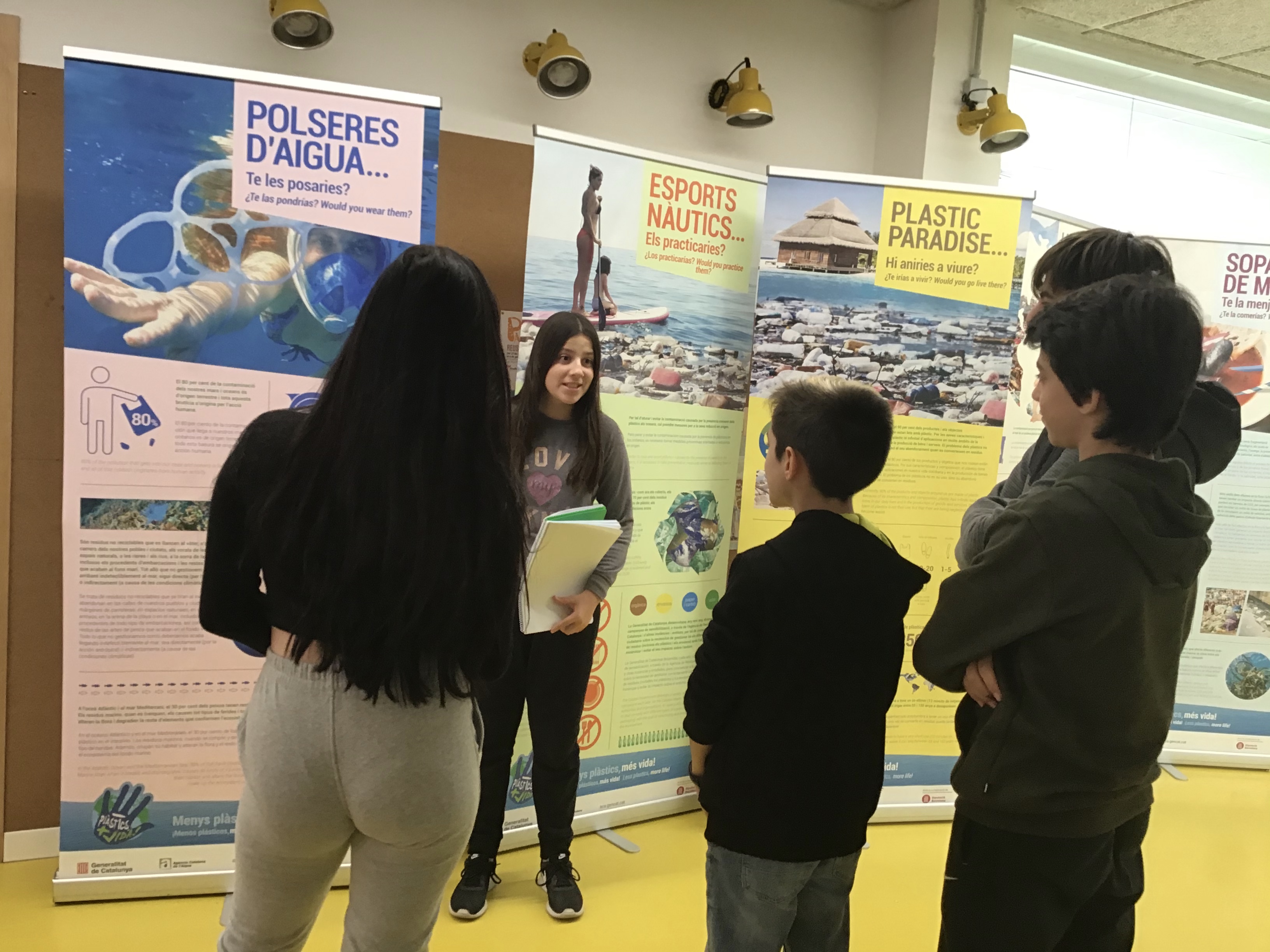 Dilluns dia 13 de gener, a l’Escola Puigcerver, vam instal·lar una exposició, proporcionada per l’ACA (Agència Catalana de l’Aigua). Durant aquesta setmana, els alumnes de l’escola han anat a visitar l’exposició i alguns cursos han fet activitats relacionades. Com per exemple els alumnes de 3r de Primària, que han baixat a llegir els plafons, i cada grup ha escrit la frase més impactant que ha trobat. Després ho han posat en comú a l’assemblea, on tots han reflexionat sobre l’exposició. Un altre exemple,  són els alumnes de 2n d’ESO, que han baixat per grups a documentar-se d’un plafó diferent per, tot seguit, exposar-los davant de la classe.