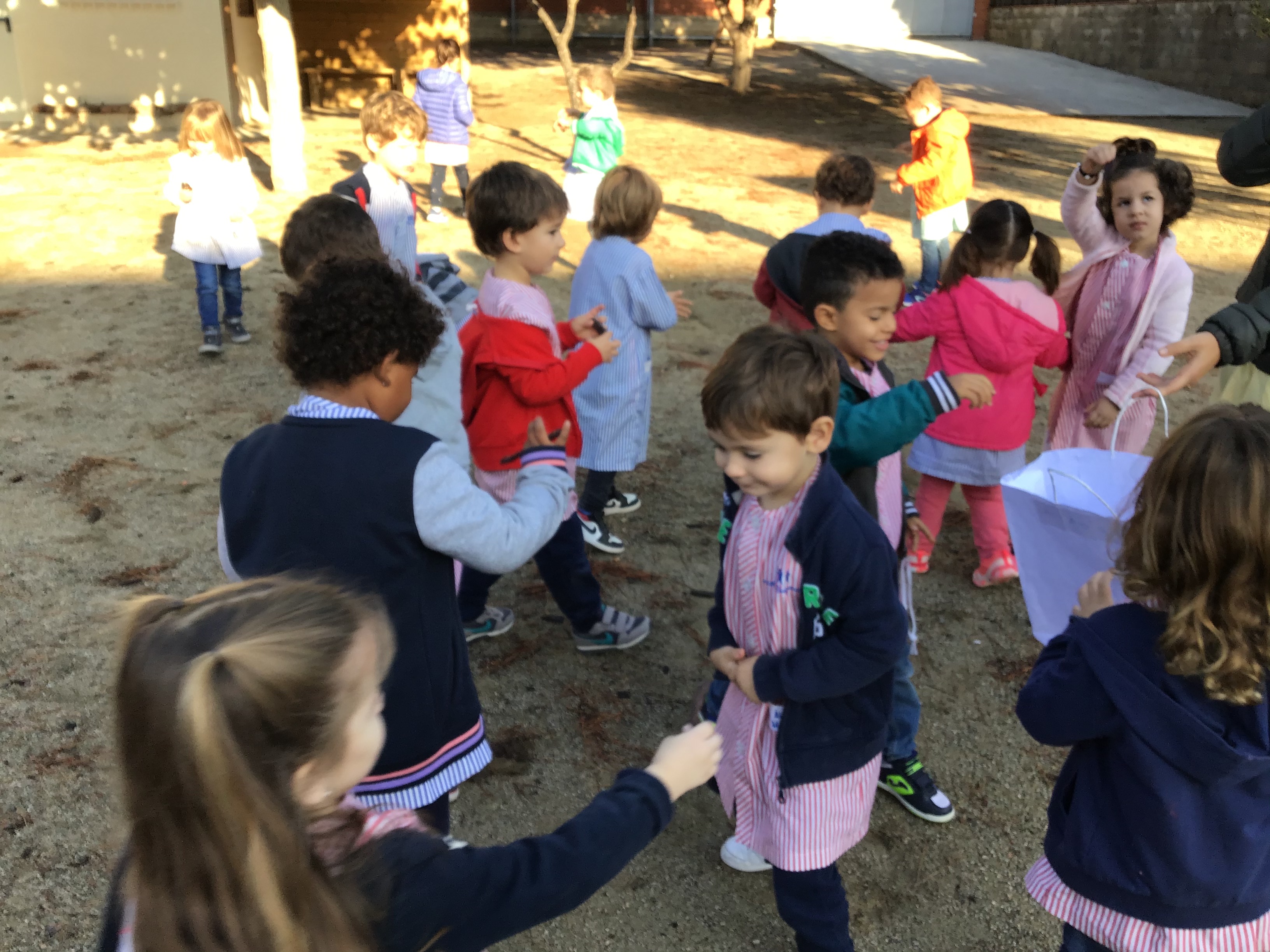 Els nens i nenes P4 van anar a buscar garrofes al pati de sorra, al costat del maset. Van aprofitar que començaven a caure per recollir-les.