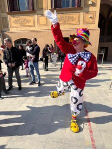 Per culminar aquest escenari d’aprenentatge tan engrescador, vàrem decicir convidar a les famílies a gaudir del nostre espectacle de circ. Però no estàvem sols! Van tenir una visita molt especial: el pallasso malabarista Tito, que va venir a veure la nostra actuació i a compartir amb nosaltres la màgia del circ. A més ens va oferir enseyar-nos el seu número de malabars, i… sorpresa! Va trobar per fi el seu nas, l’havia perdut entre les seves pilotes de malabars!