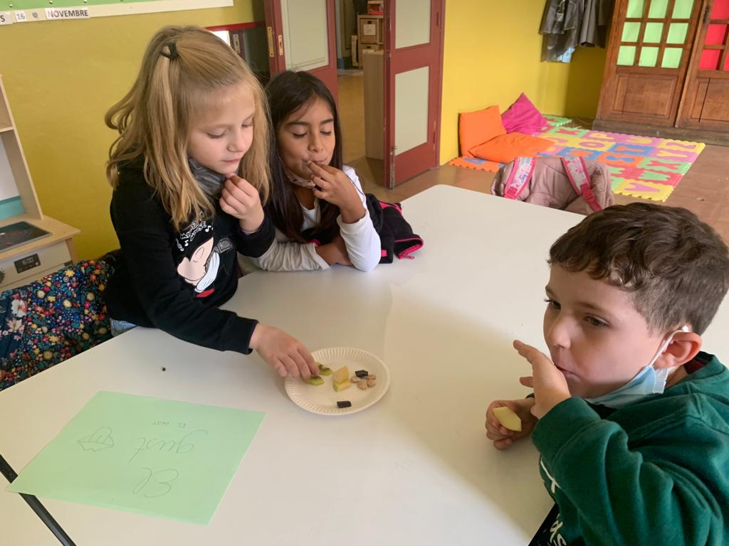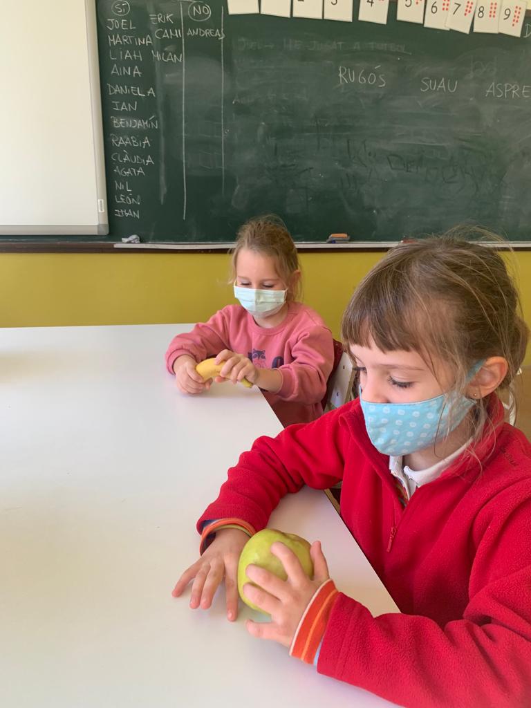 A més, hem estudiat els nostres cinc sentits. Per saber en primera persona com funcionen hem experimentat amb diferents aliments: els hem observat, olorat i tastat. Estaven tots boníssims!