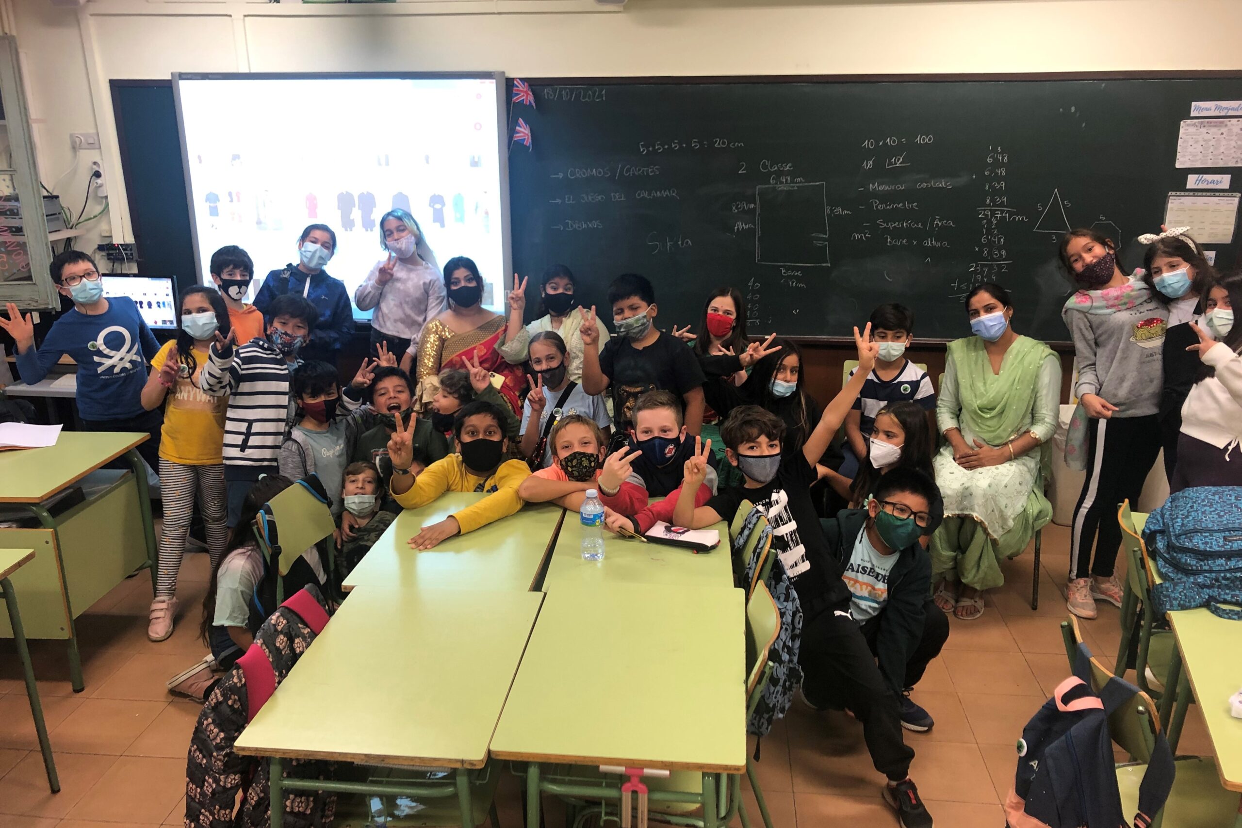 A més a més, vam tenir la sort de poder apropar-nos més a vosaltres, les famílies, ja que vam rebre la visita de la mare del Natik i de l’Anusha de 5èA. Ens van venir a ensenyar-nos la roba que fan servir en els seus països i gràcies a això vam poder veure un Sari i un Indian Suit en directe! Son els vestits típics de Bangladesh i l’Índia, i ens van explicar moltes coses interessants.