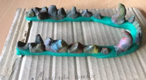 Luego hicimos una maqueta de la mandíbula del lobo con plastilina.