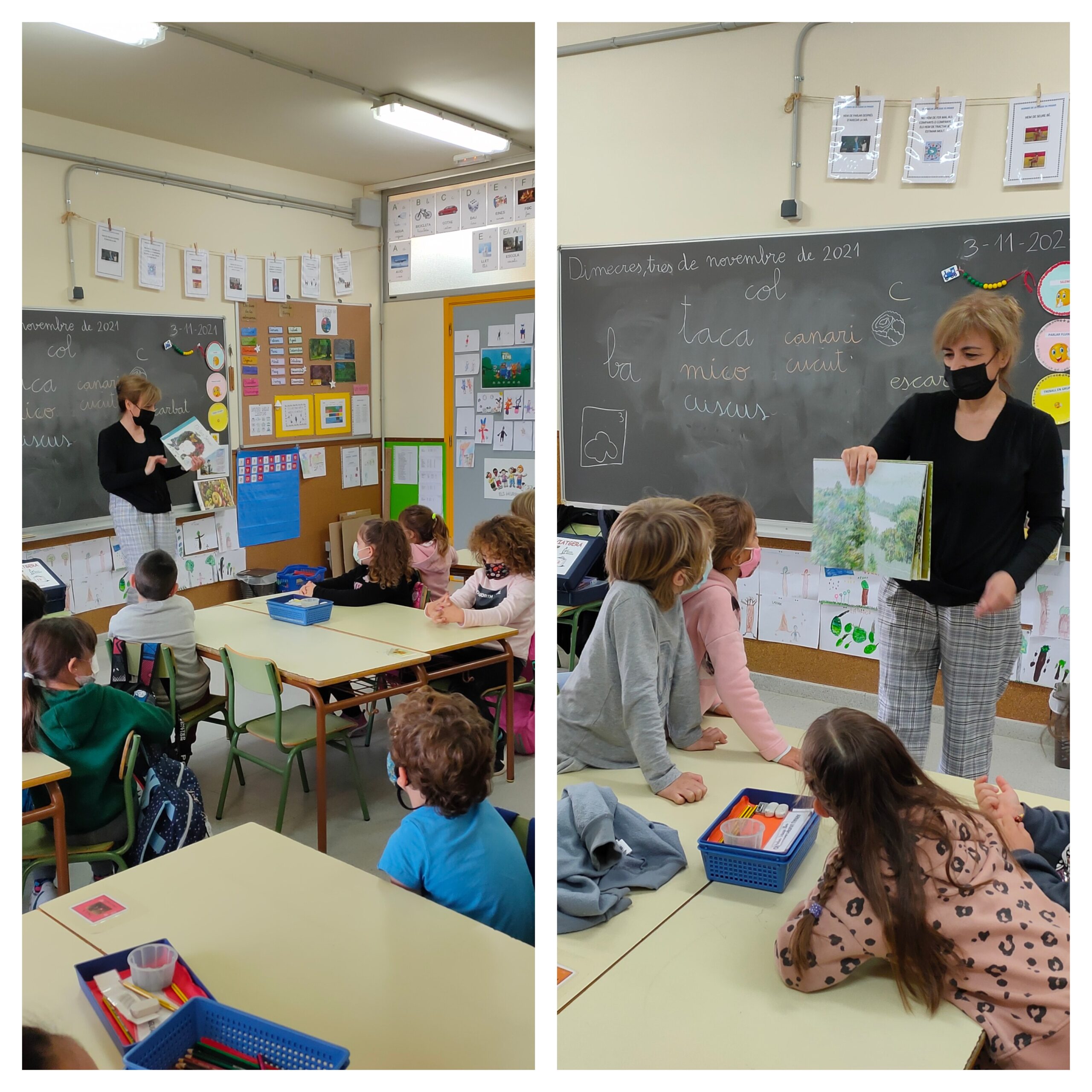 L’Olga ha vingut a explicar-nos el funcionament d’aquest material proporcionat per la biblioteca municipal del poble. A dins podem trobar diferents llibres i contes per poder compartir una estona de lectura a casa. A més, com que aquest curs som països, ens han proporcionat llibres relacionats amb el nostre país.