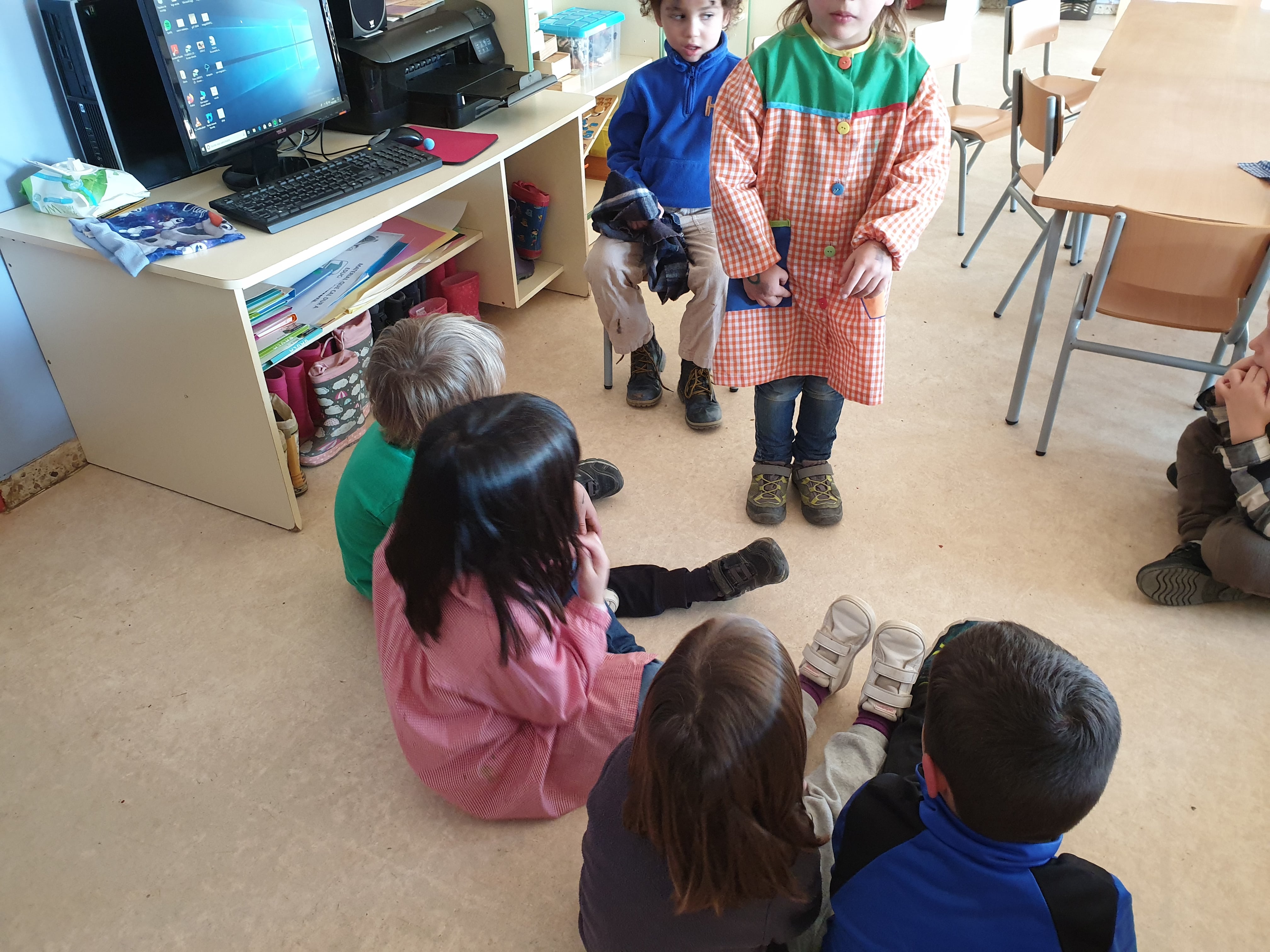 Amb els alumnes d’infantil, hem creat un espai de consciència fonològica perquè cada un d’ells i elles puguin anar desenvolupant habilitats fonològiques a traves d’activitats que permeten als nens i les nenes explorar les seves capacitats per escoltar sorolls produïts pel propi cos i del medi ambient, practicant i centrant-los en determinats sorolls.