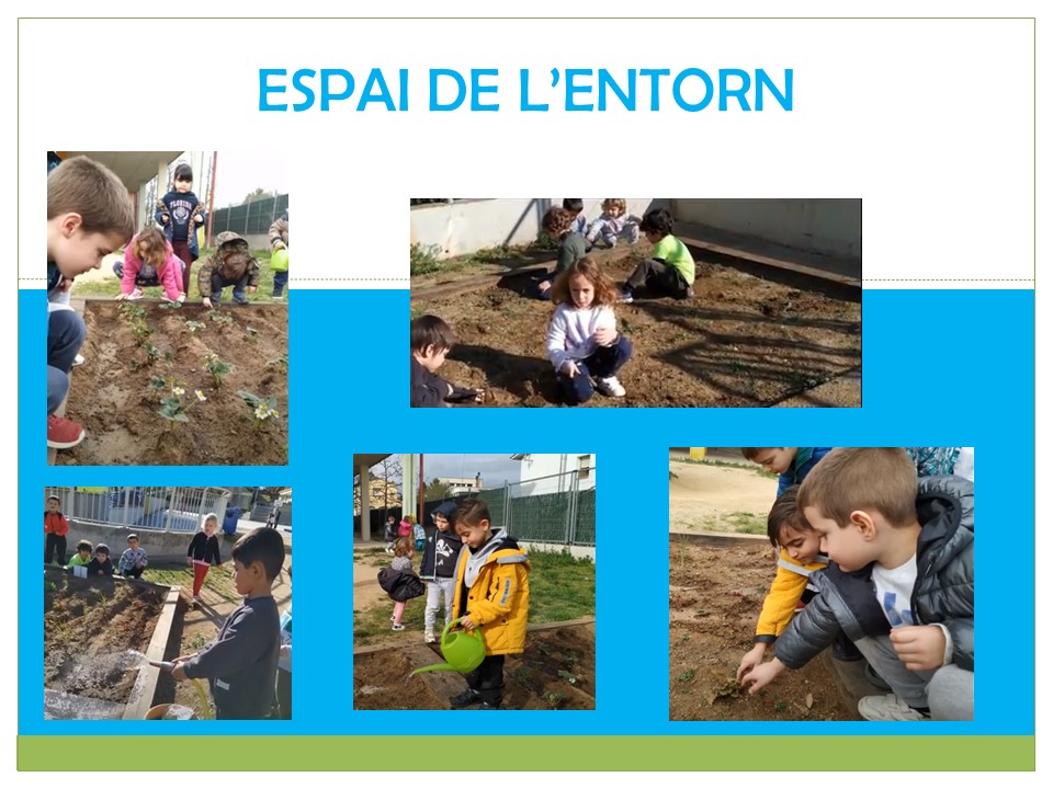 Surto de classe i me’n vaig a l’hort, cuido i miro com creixen les plantes. Pel camí oloro les plantes aromàtiques i observo els arbres. Descobreixo els cargols i altres animals.