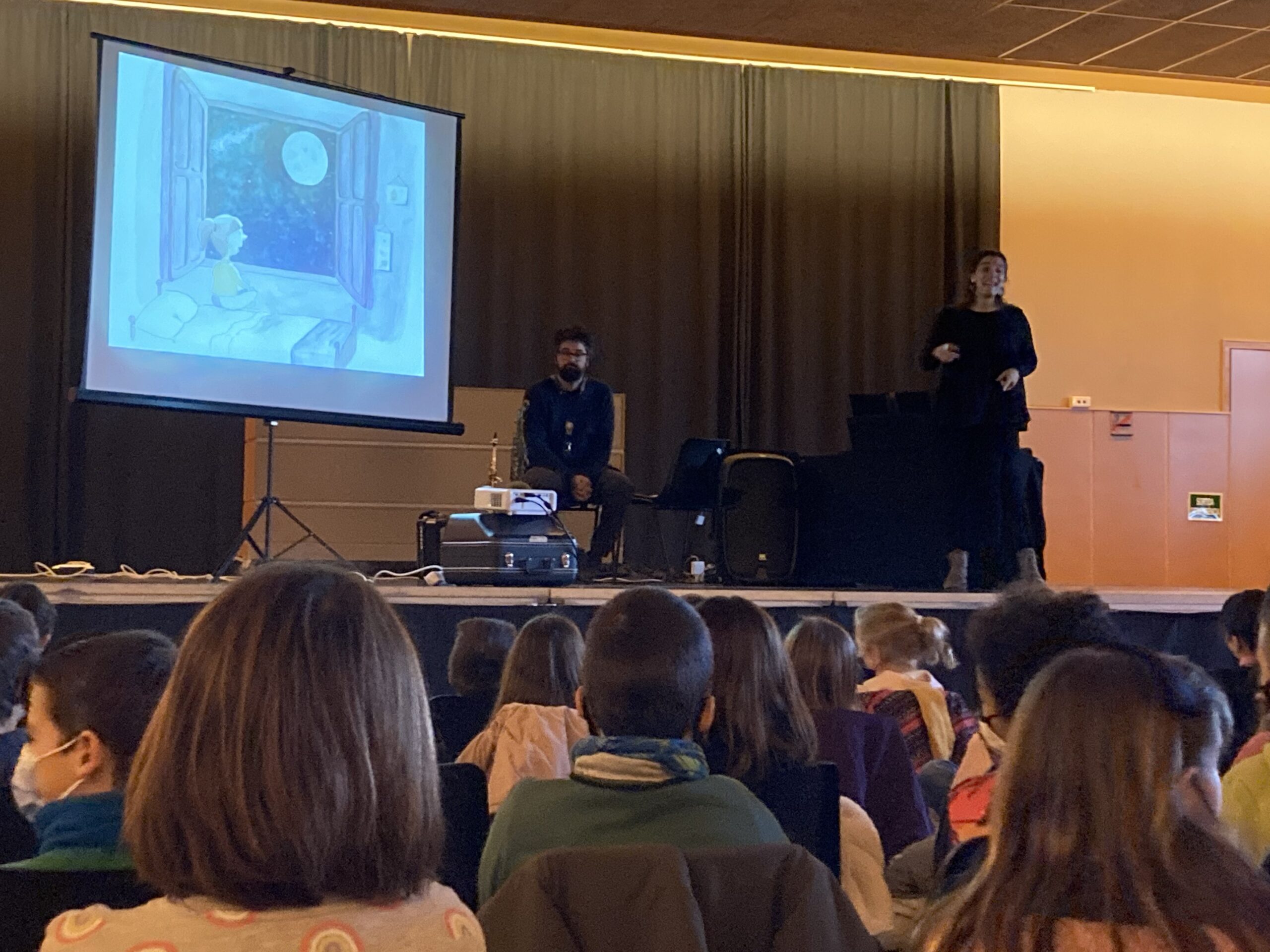 Aquest dilluns passat, 1r, 2n, i 3r vam tenir el gran plaer i privilegi d’anar a La Fabrica a veure: L’UNIVERS DE LA LLUNA. Un espectacle musical i visual interpretat per la Sara Bigas i el Francesc Vidal, dos artistes d’aquí Granollers.