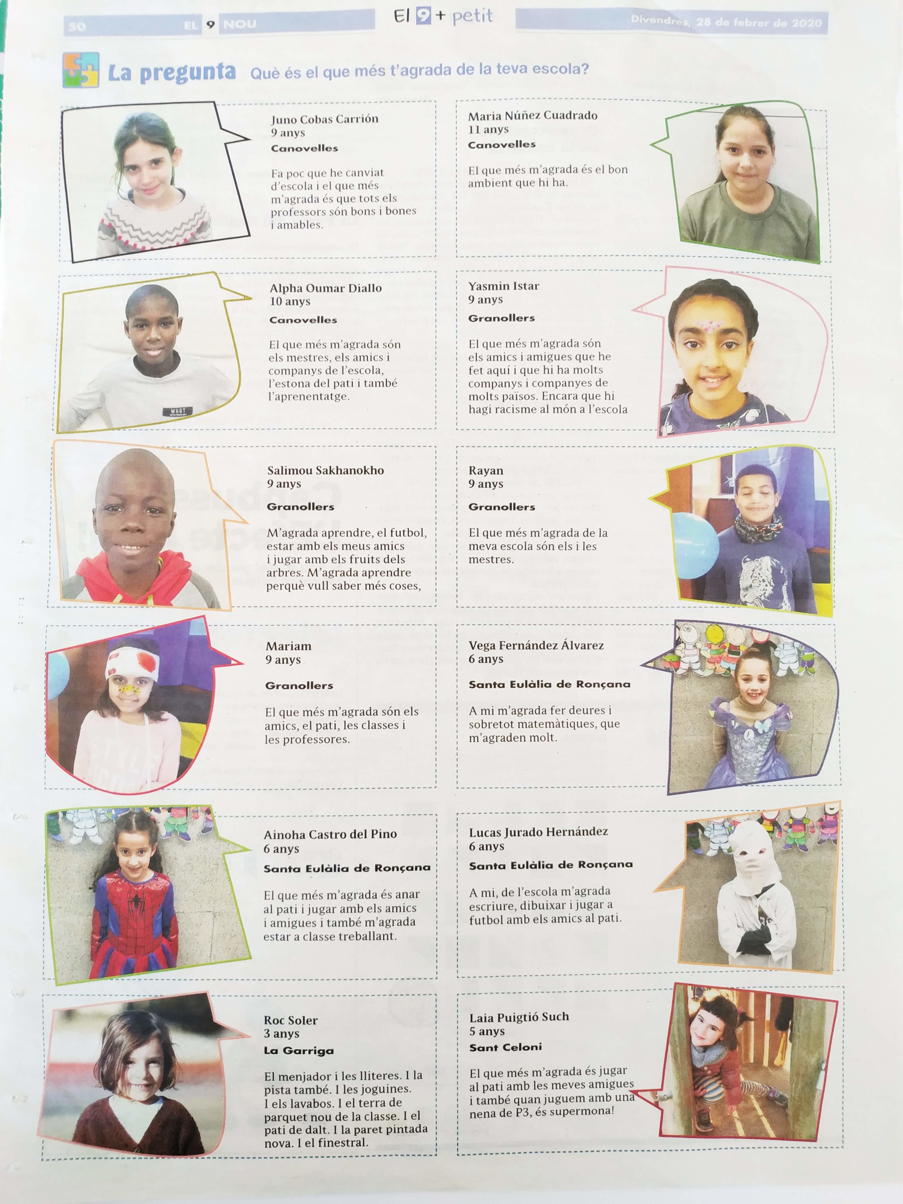 El 9 nou + petitPer CB / 5 de maig de 2021 / Portada Promoció 2014 - 3r / el 9 nou Una nova edició on els nens i nenes de primer de l’escola responen a la pregunta que els hi fan des del diari.