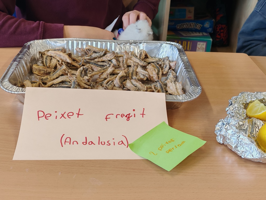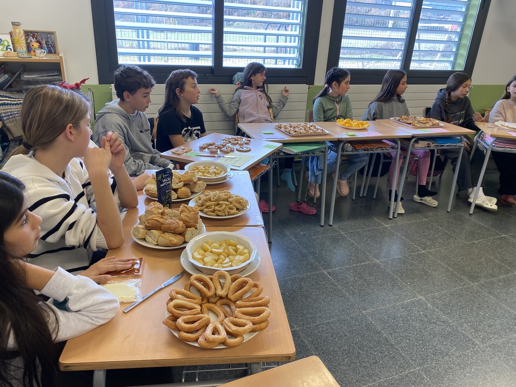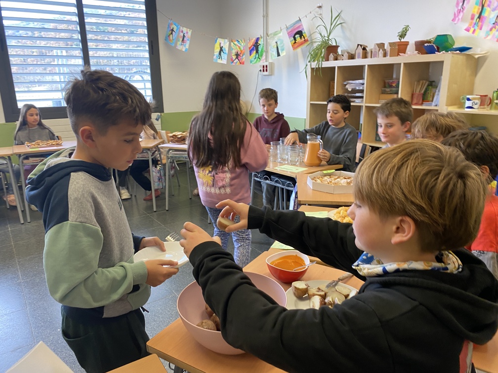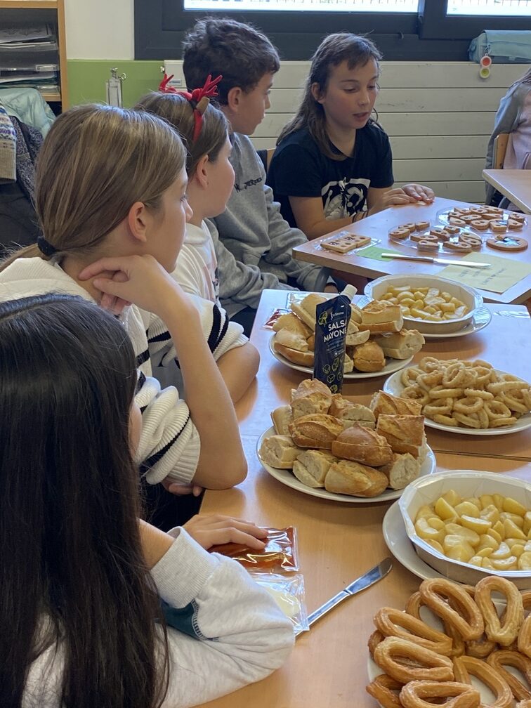 En acabar de presentar, les mestres els hi van dir que ja podien començar a tastar tots els plats. Mestres i alumnes van gaudir de plats deliciosos com fideuà, bunyols de crema, braves, vitralls dolços, entre d’altres.