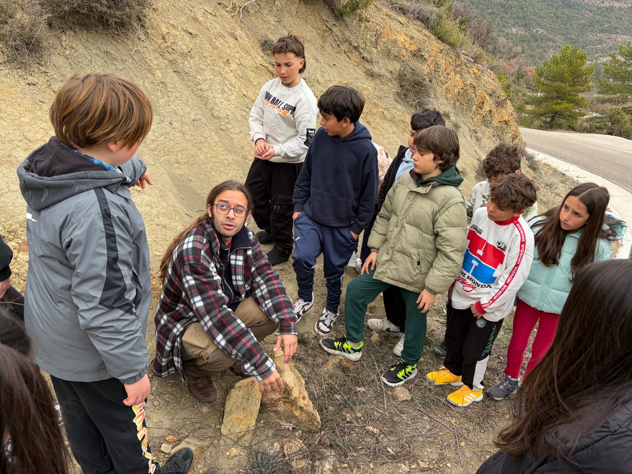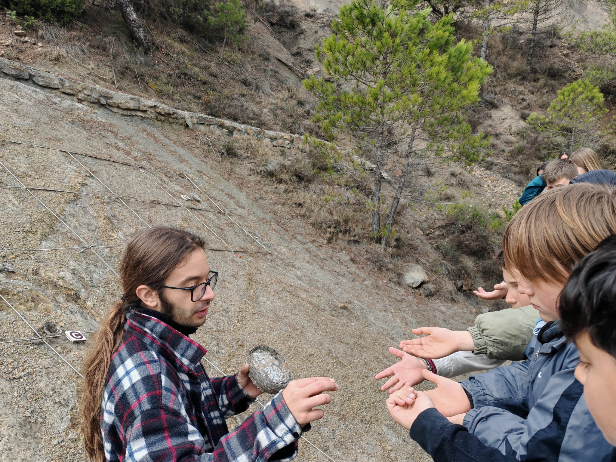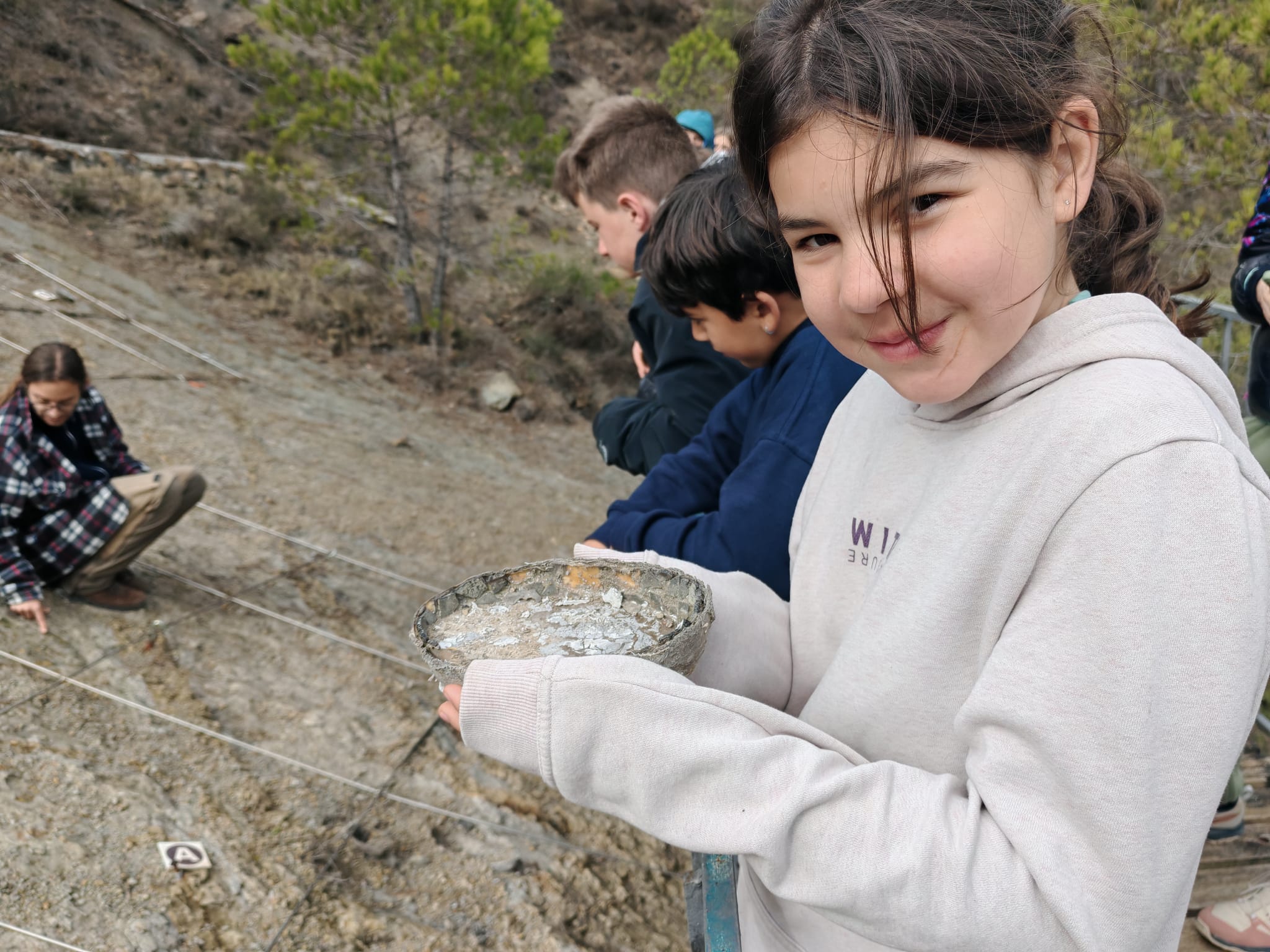 Després d’esmorzar, van anar a un mirador on els van ensenyar fòssils de plantes i d’ous de dinosaure, millor dit, de titanosaure. Més tard vam anar a dinar i van jugar una mica.
