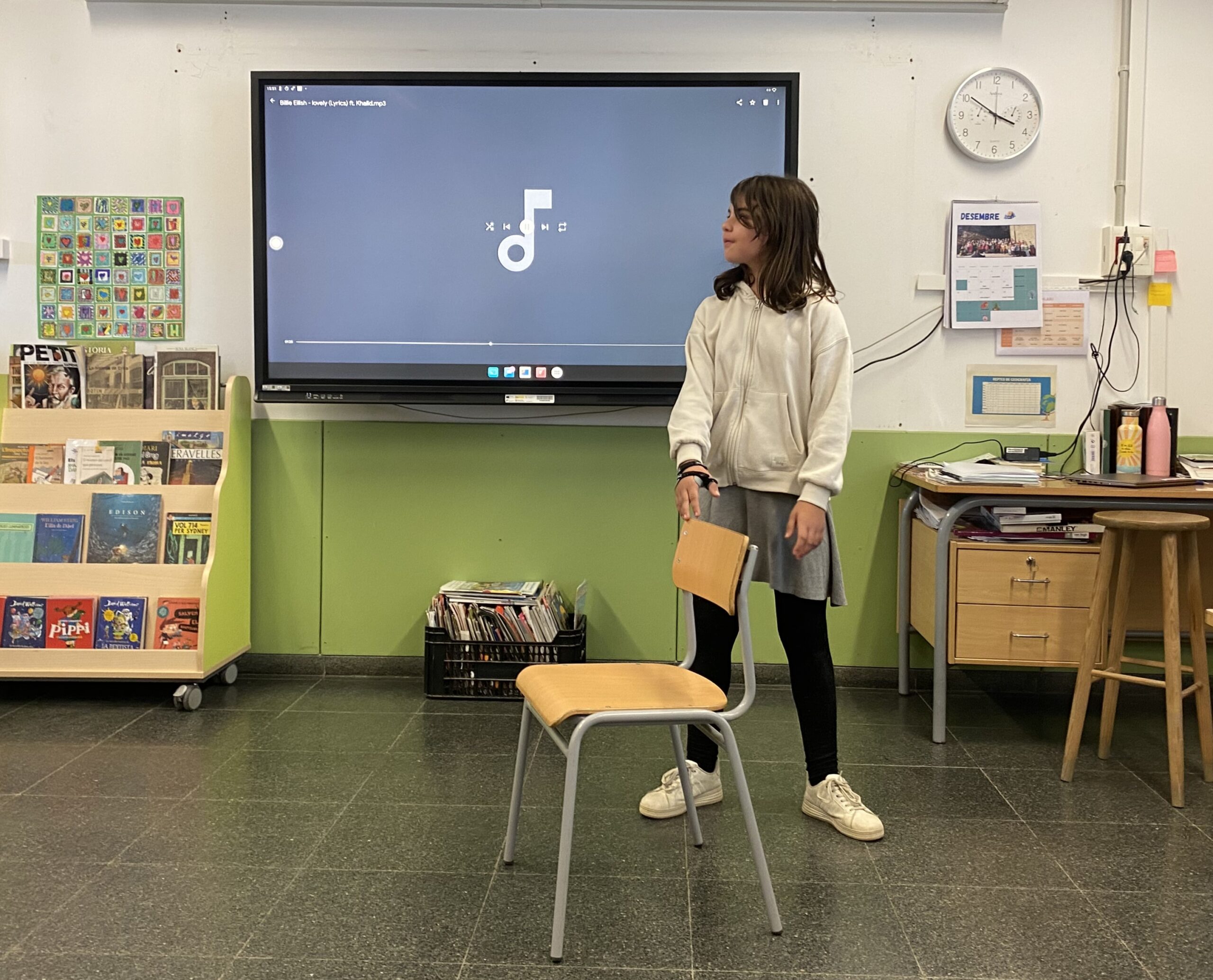 La tarda del dia cinc de desembre a l’escola Rosa Campà es va fer la Mostra musical i artística a totes les aules, aquesta mostra consisteix en fer un ball, cantar, tocar un instrument…
