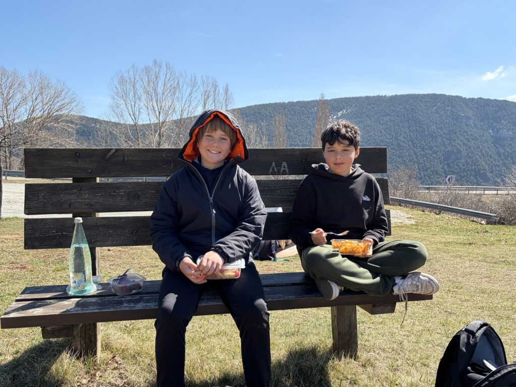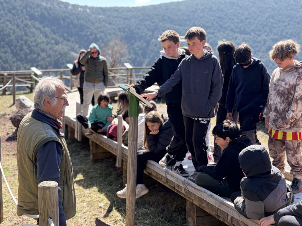 Seguidament, van anar per un camí de roques que tenien un color vermellós, “terra roya” en diuen al Pallars, semblava que fossin de ferro rovellades. Allà, el Jose, el geòleg, els va fer una petita explicació de les plaques tectòniques, que era una de les coses que havien traballat a classe, després van esmorzar i van tenir una estona de temps lliure.