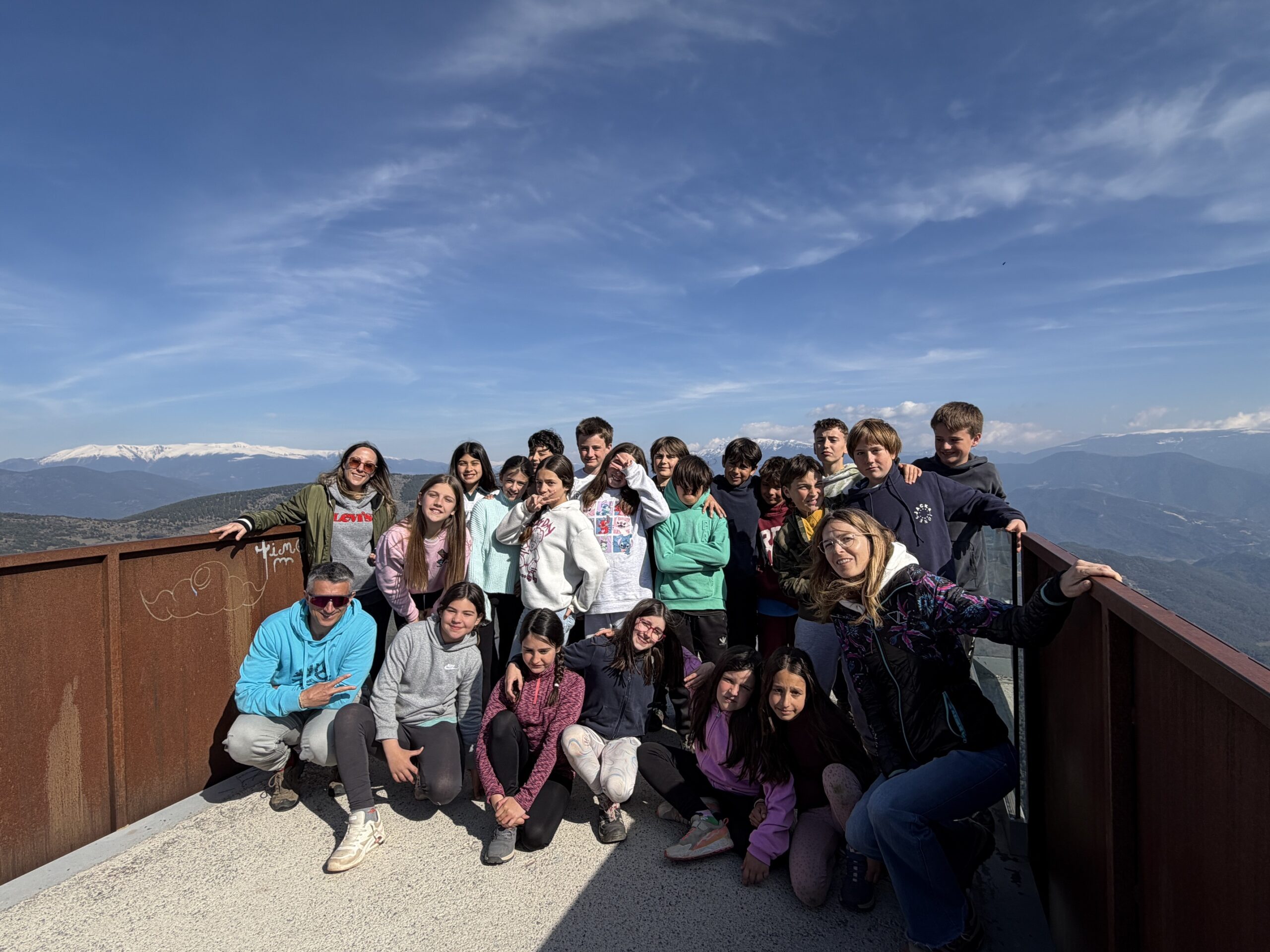 Finalment van pujar a l’autobús i van anar cap a Montferrer, però abans d’arribar van parar a un miraddor i es van fer una foto tots junts.