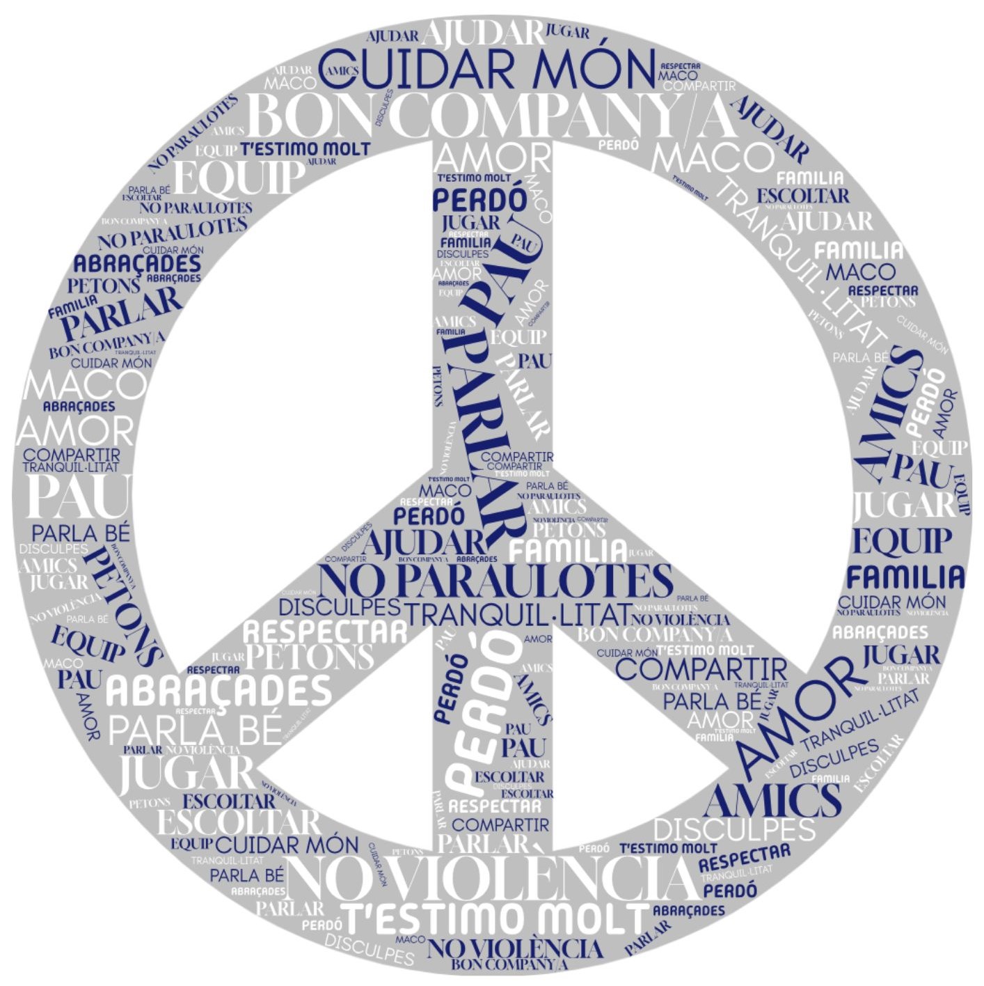 El passat 30 de gener vam celebrar a les aules el dia escolar de la no-violència i la pau. Vam treballar a partir d’un vídeo i d’un poema de la Joana Raspall el què és la violència i del que implica. Vam fer un llistat de conceptes del que significa per nosaltres la pau i vam crear aquest núvol de paraules.