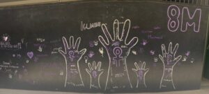 Seguidament, entre tots i totes vam escollir 5 paraules relacionades amb el 8M i, amb ajuda d’uns voluntaris/es, vam escriure-les en un mural compartit amb la resta de l’escola: