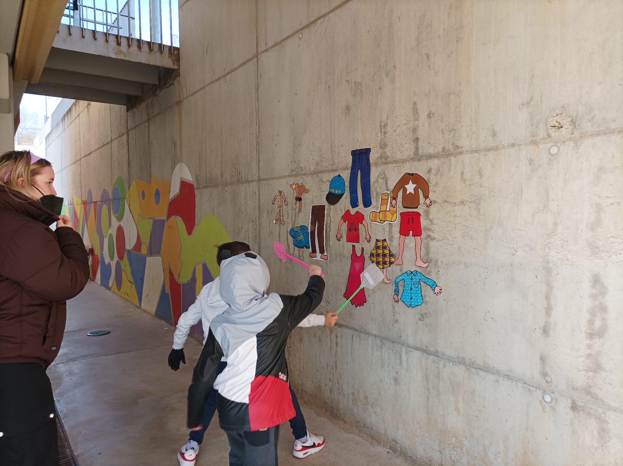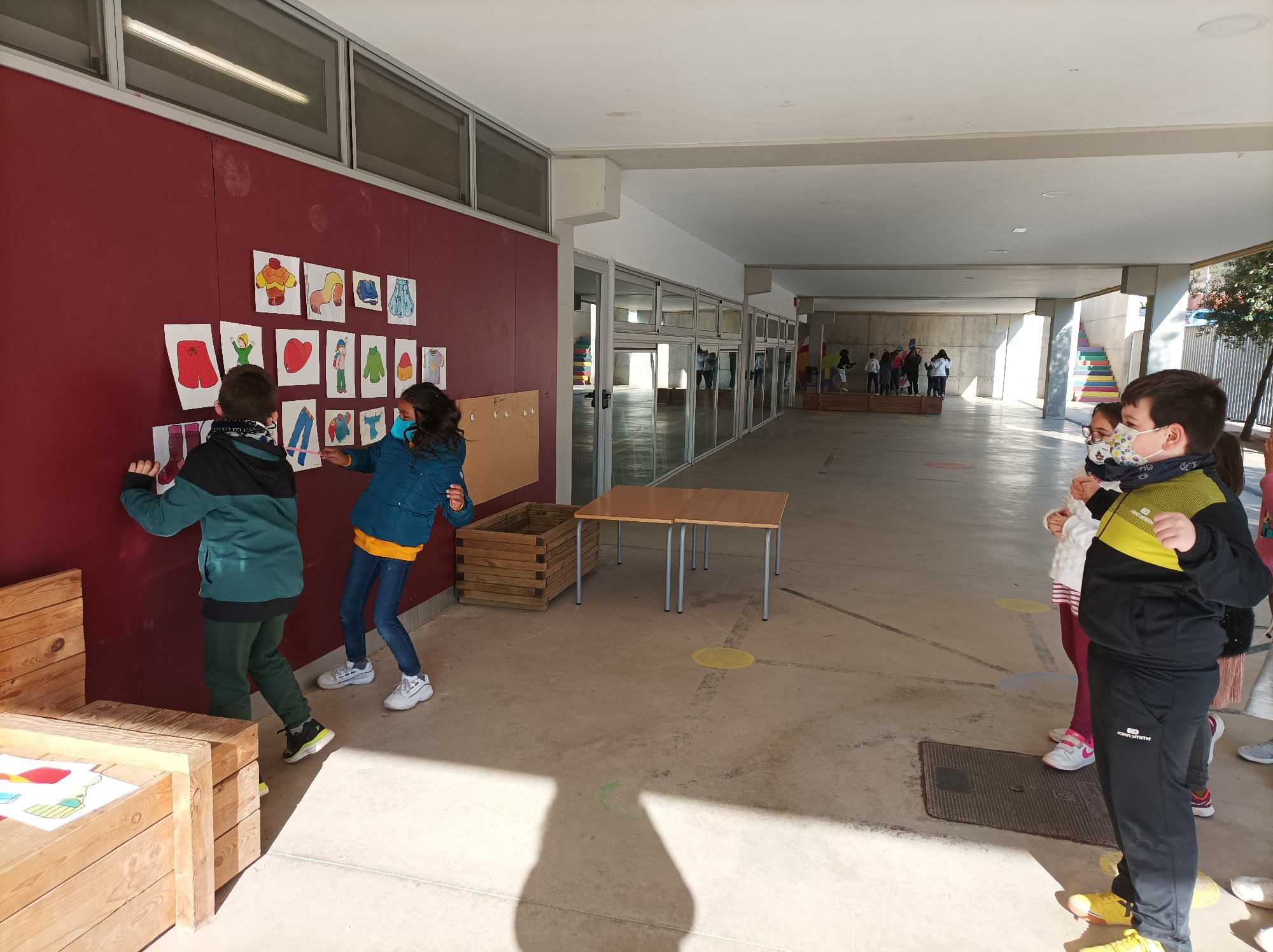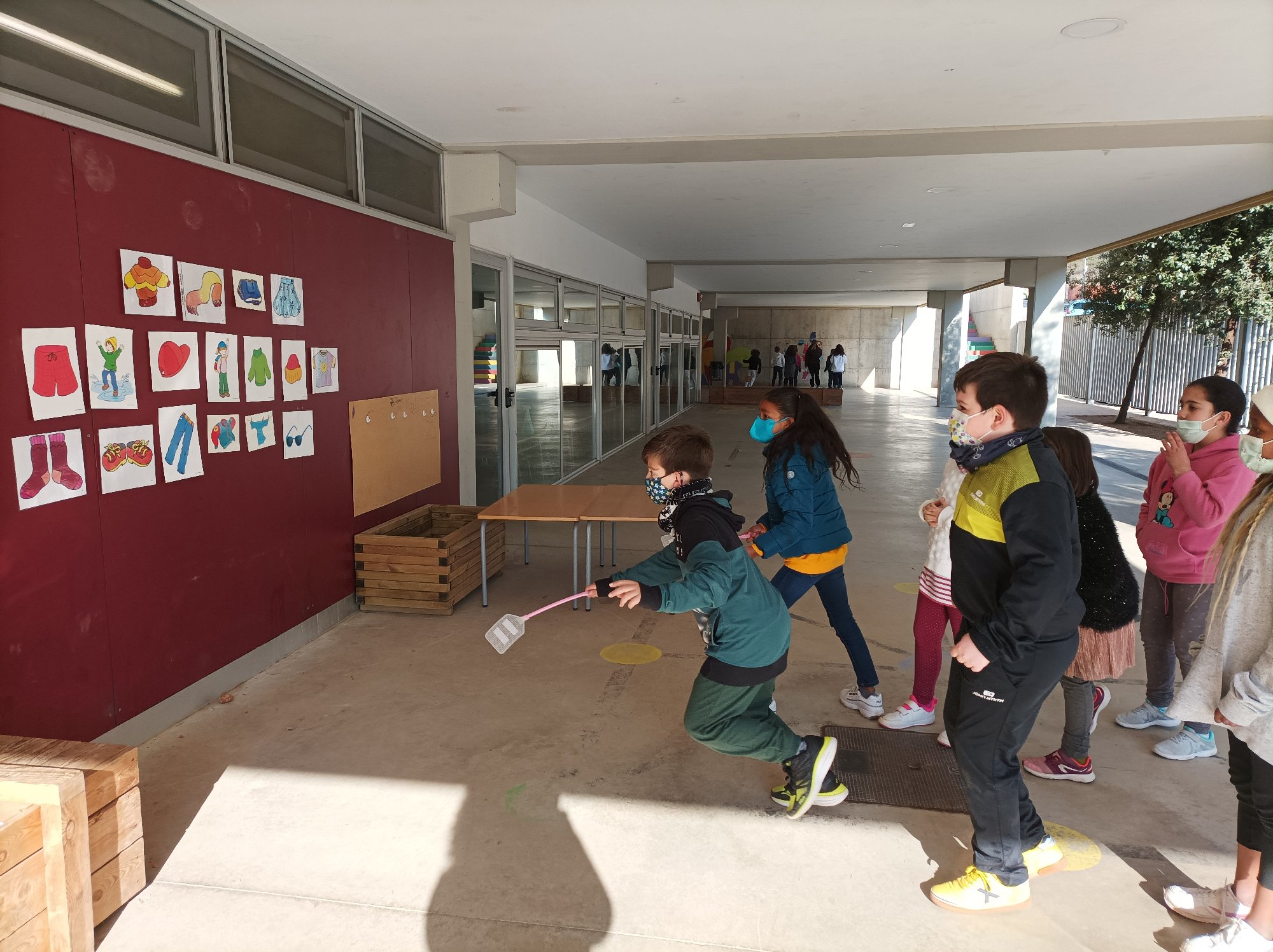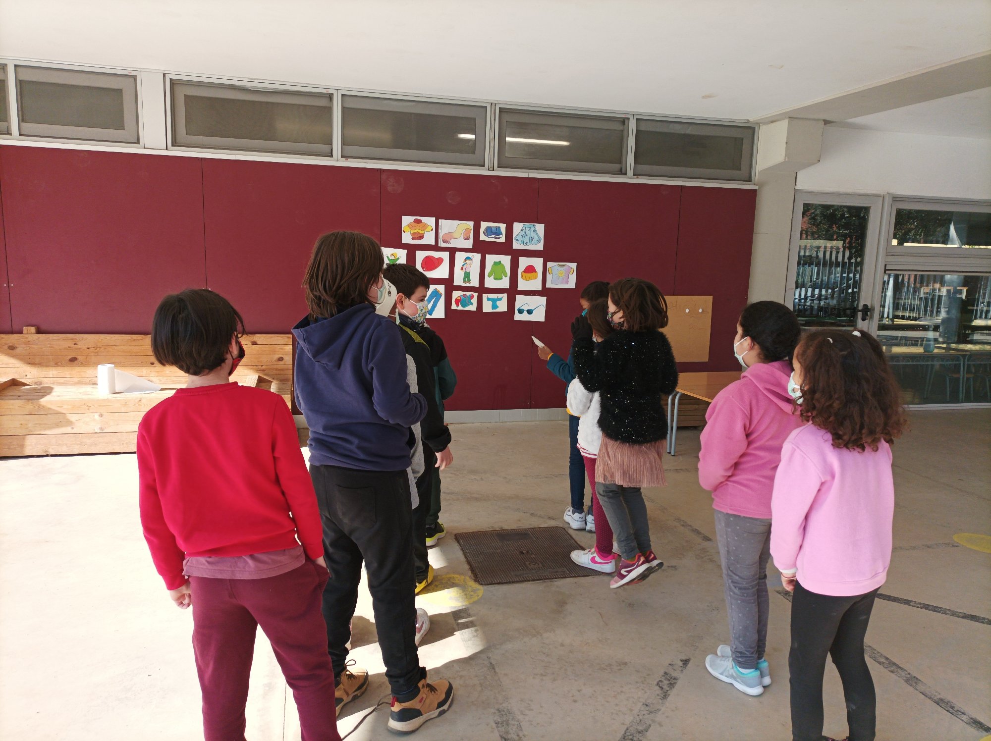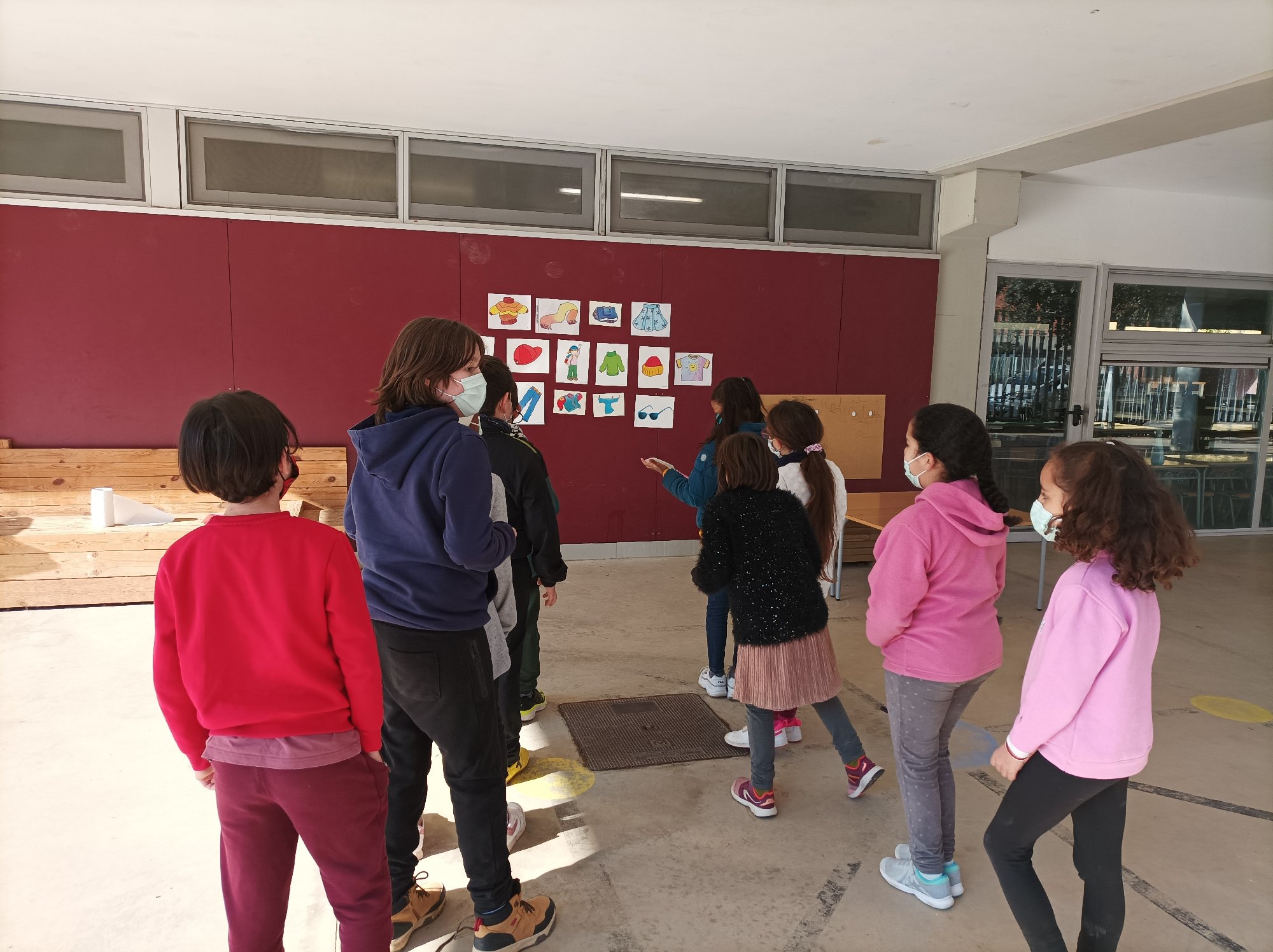 So, the other day we have played this funny game ” listen and touch” the words you hear! We are now learning about clothes among other contents and so we have taken advantage of the good weather and off we went to the playground!