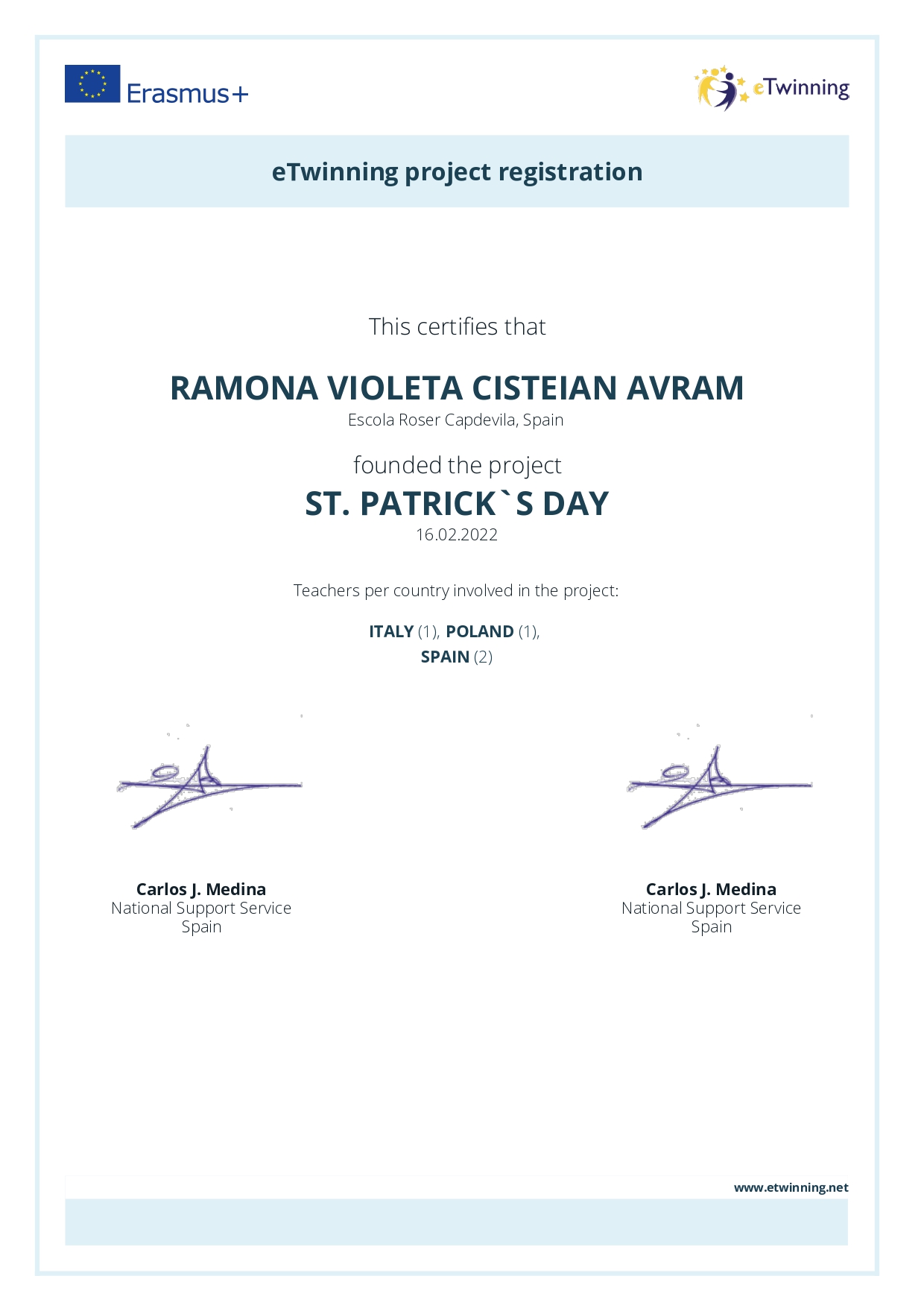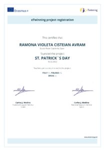 We are involved as founders in the European Etwinning project: St. Patrick’s day! The week from Monday 10th of March to Monday 17th of March we are dedicating our classes to activites related to the patron of Ireland, Una McGeough’s country.