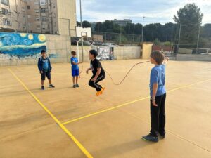 En aquest segon trimestre, hem treballat amb cordes, aprenent a coordinar-les amb música. En grups han creat una coreografia combinant la corda amb les habilitats treballades al llarg d’aquestes setmanes.