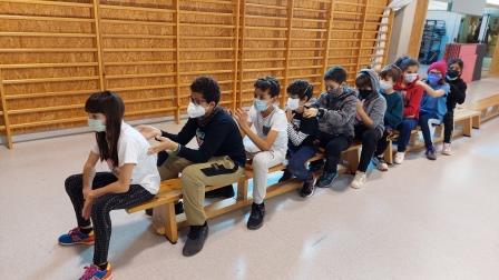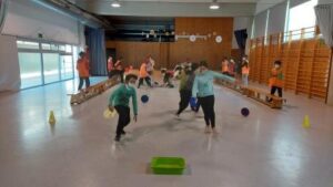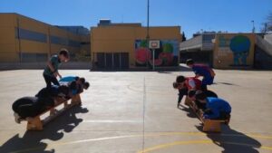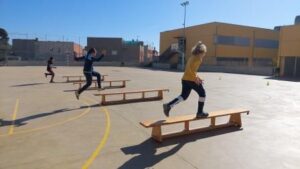 Els nens i nenes de 5è A durant aquest trimestre hem treballat les diferents habilitats motrius bàsiques mitjançant desplaçaments i salts.