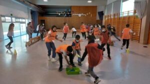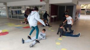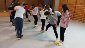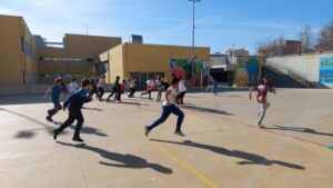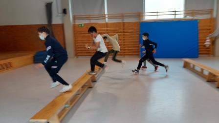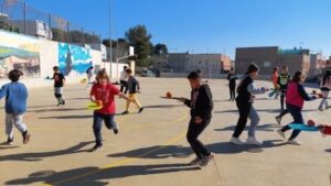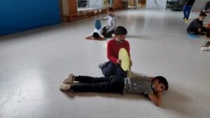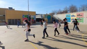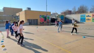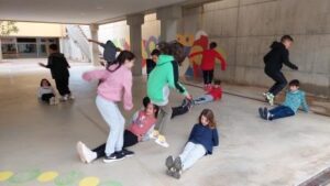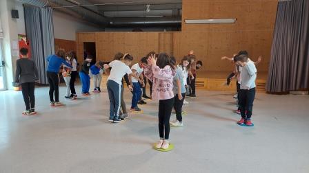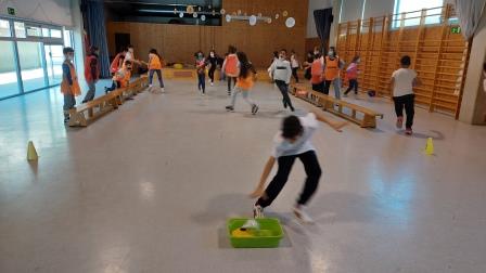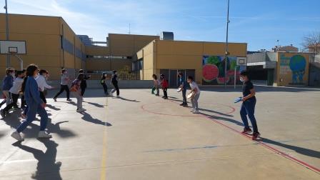 Els nens i nenes de 5è B durant aquest trimestre hem treballat les diferents habilitats motrius bàsiques mitjançant desplaçaments i salts.