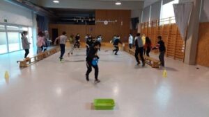 Els nens i nenes de 6è B durant aquest trimestre hem treballat les diferents habilitats motrius bàsiques mitjançant desplaçaments i salts.
