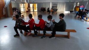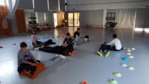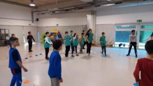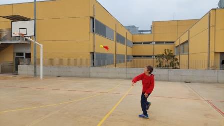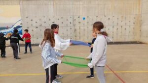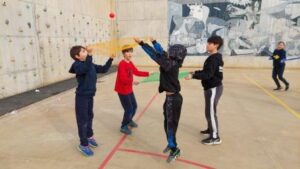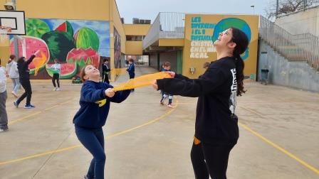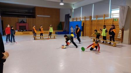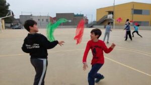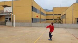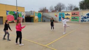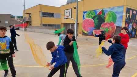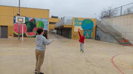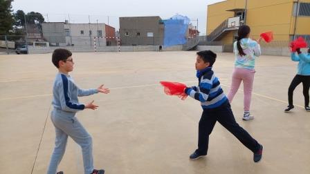 Hem treballat els llançaments i recepcions de diferents materials alternatius com els frisbees, els ringos, les indiaques o els mocadors mitjançant un moviment coordinat.