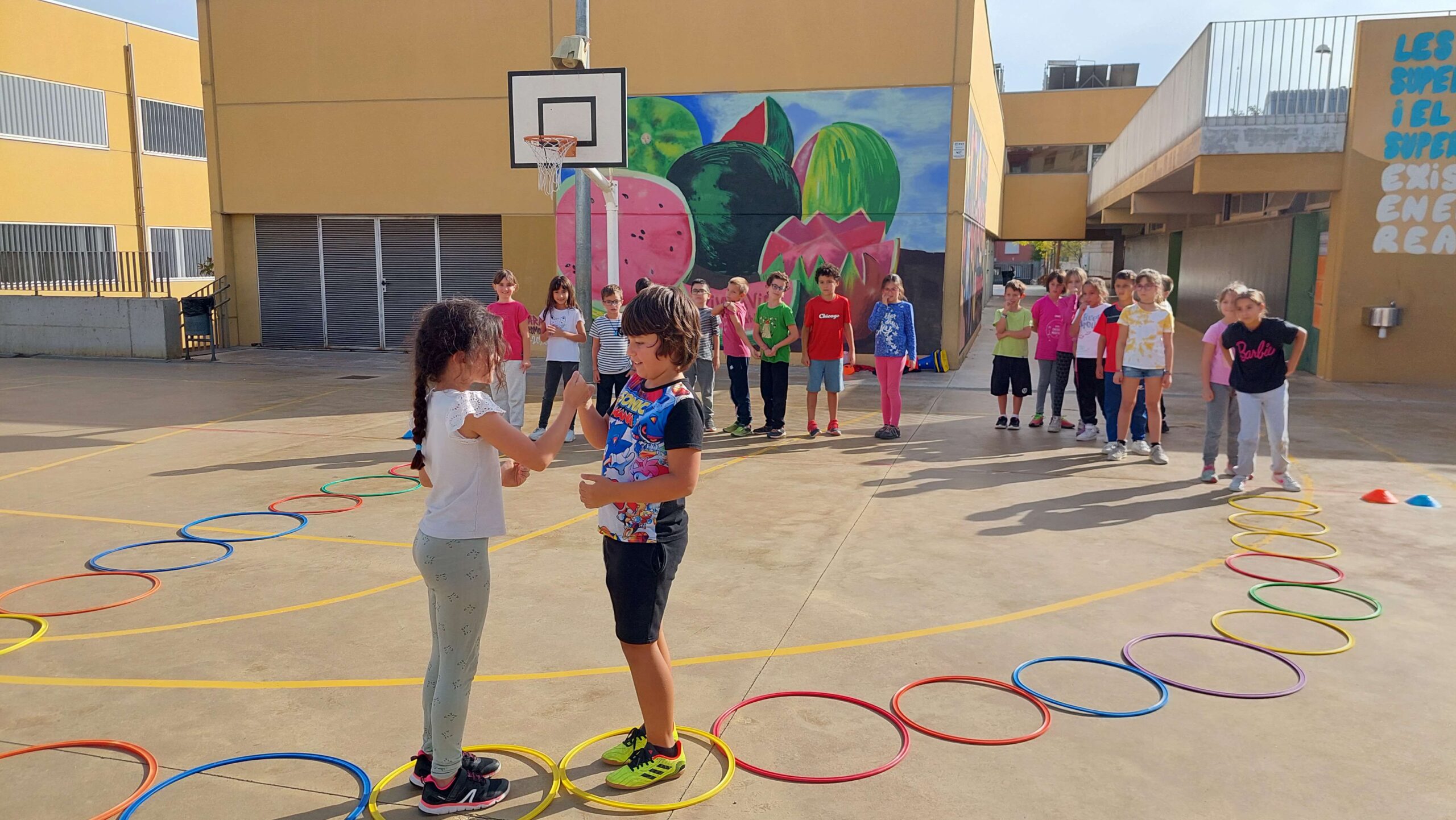 Durant aquest trimestre hem començat a conèixer les possibilitats del cos en la realització d’activitats físiques, aprenent a dosificar l’esforç i mostrant una actitud d’autosuperació en la millora de les qualitats físiques.