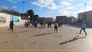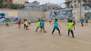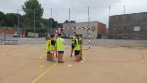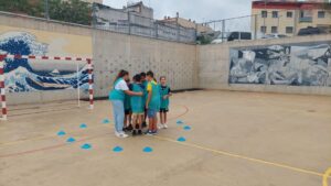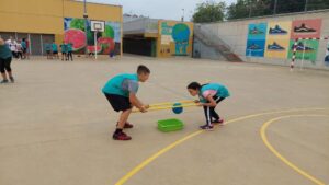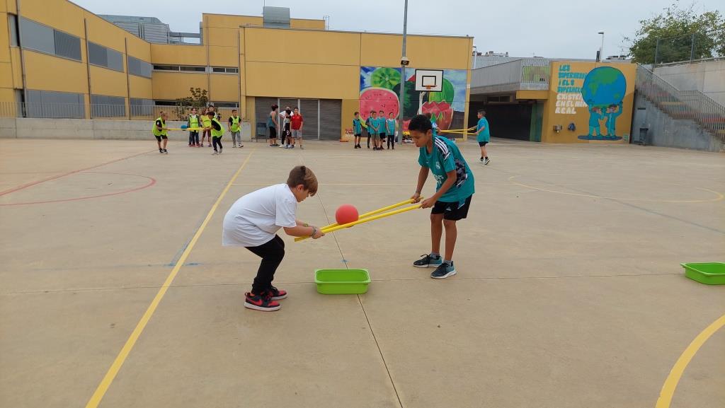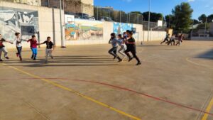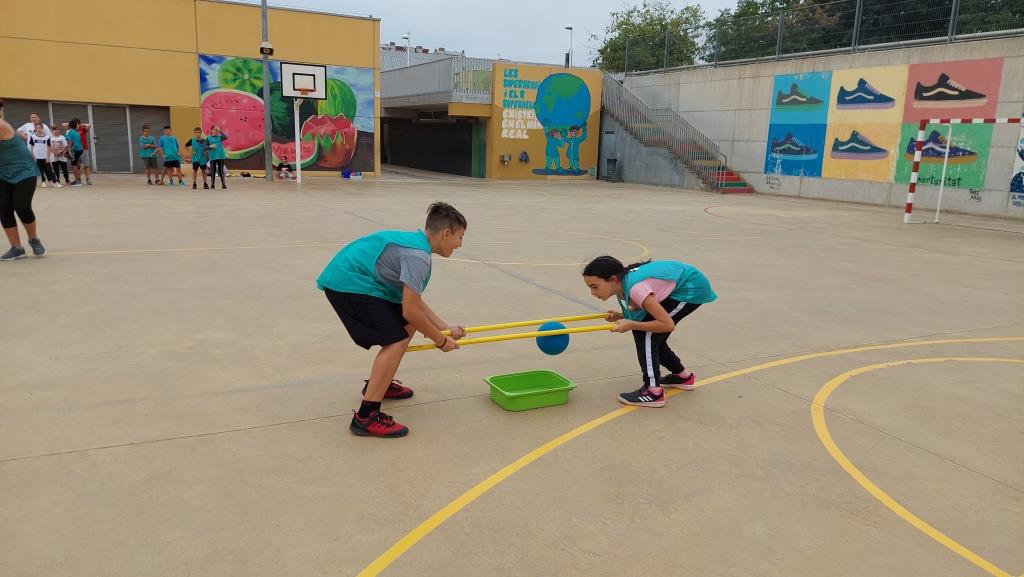 Amb jocs col·lectius descobrint estratègies relacionades amb la cooperació i l’oposició i valorant l’esforç i la superació.