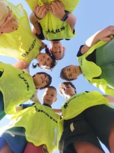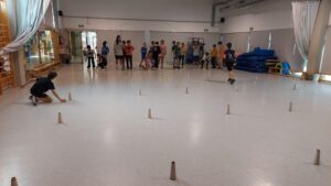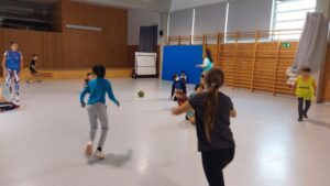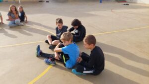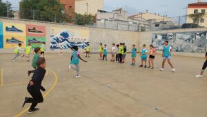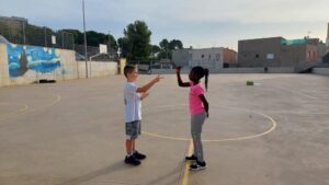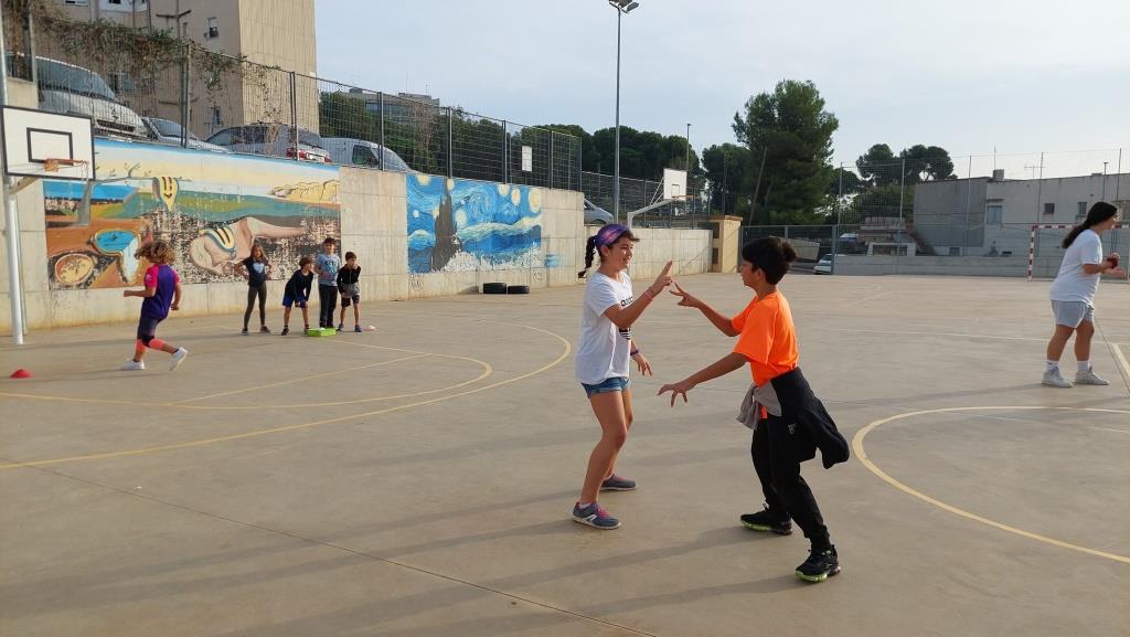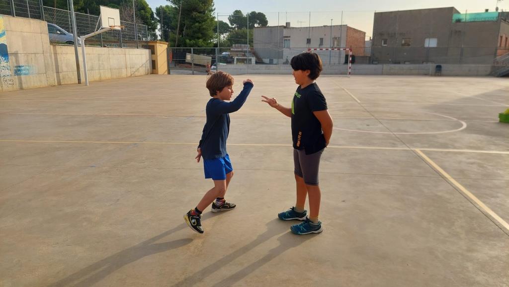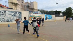 Amb jocs col·lectius descobrint estratègies relacionades amb la cooperació i l’oposició i valorant l’esforç i la superació.