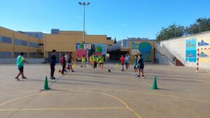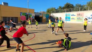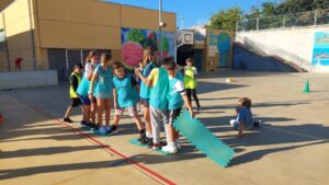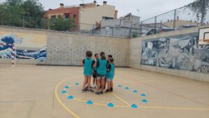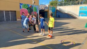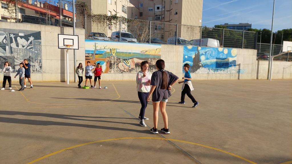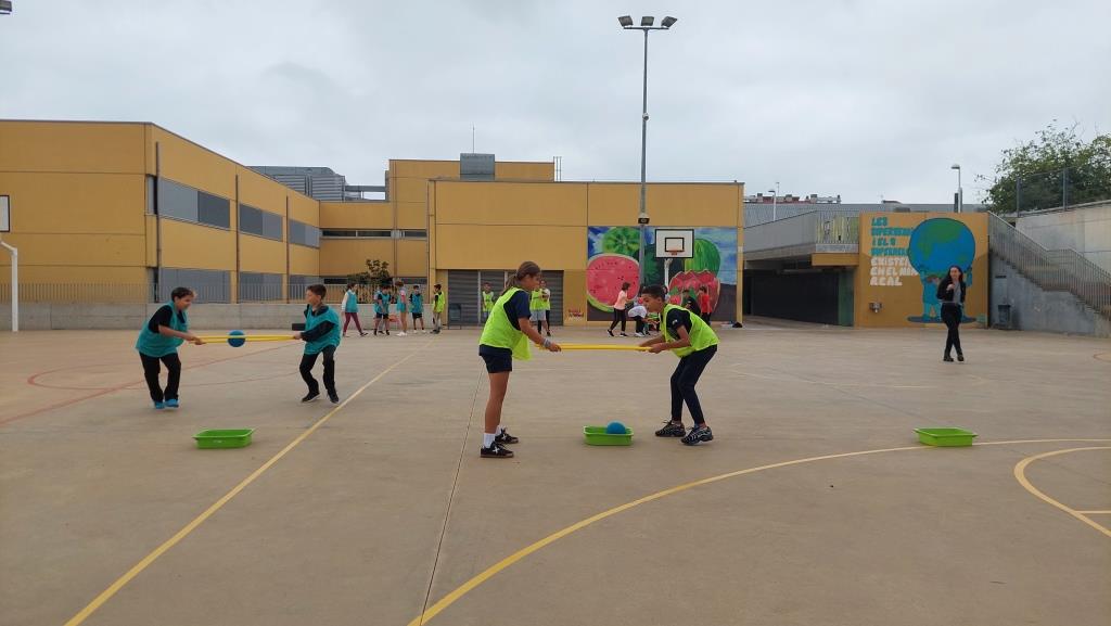 Amb jocs col·lectius descobrint estratègies relacionades amb la cooperació i l’oposició i valorant l’esforç i la superació.