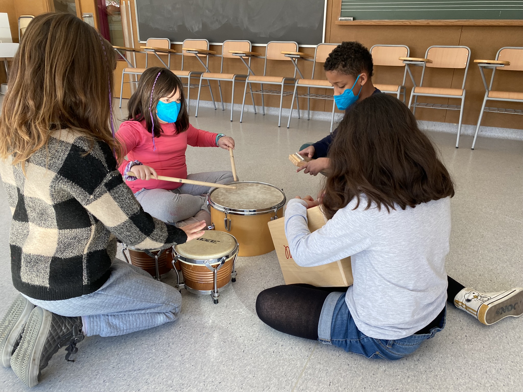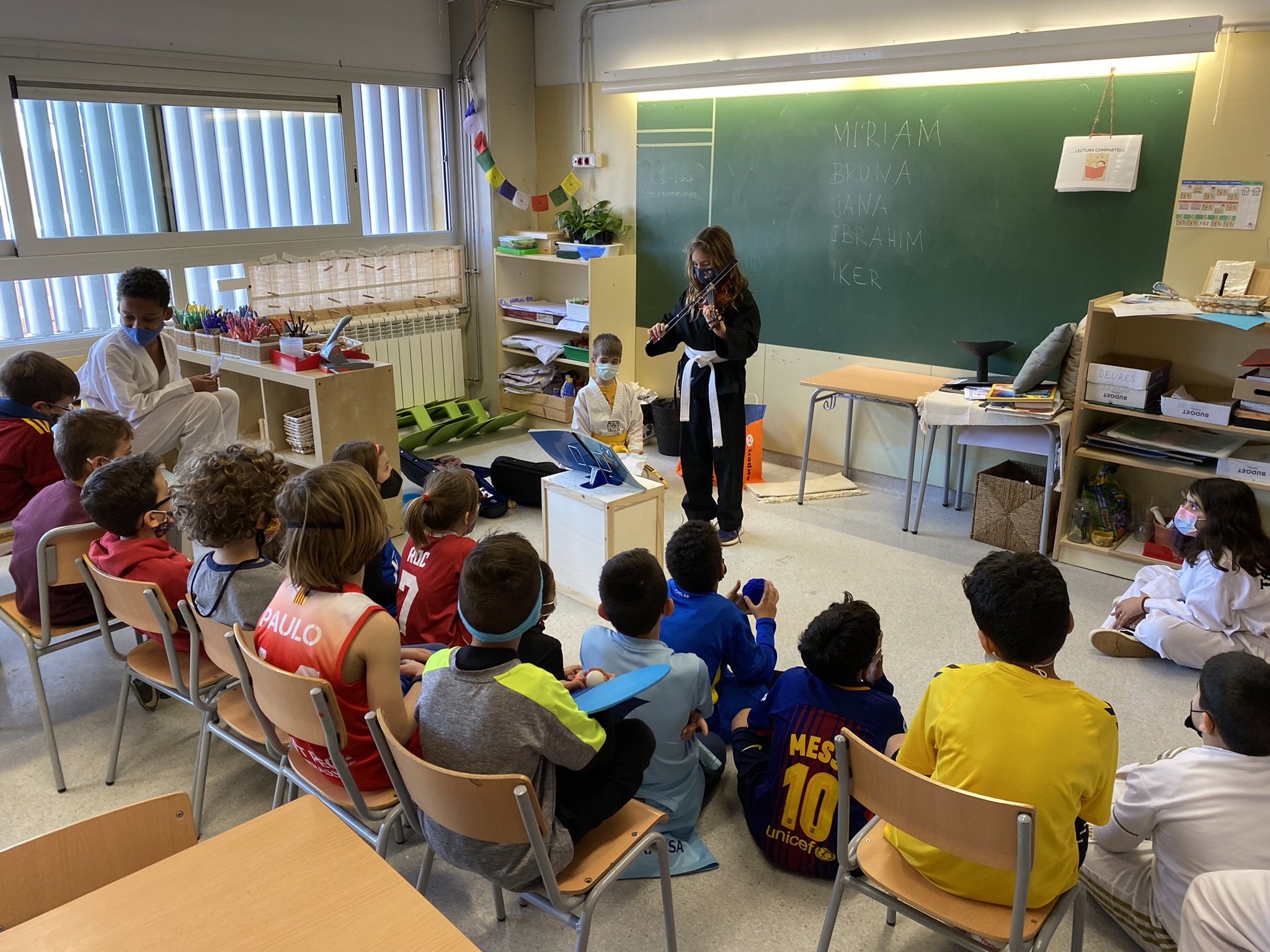 Alguns dels companys i companyes de l’aula ens han fet una petita audició en directe i ens han presentat el seu instrument. La resta de companys i companyes han aprofitat l’ocasió per fer preguntes i descobrir com sonen i les dificultats que té aprendre a tocar un instrument.